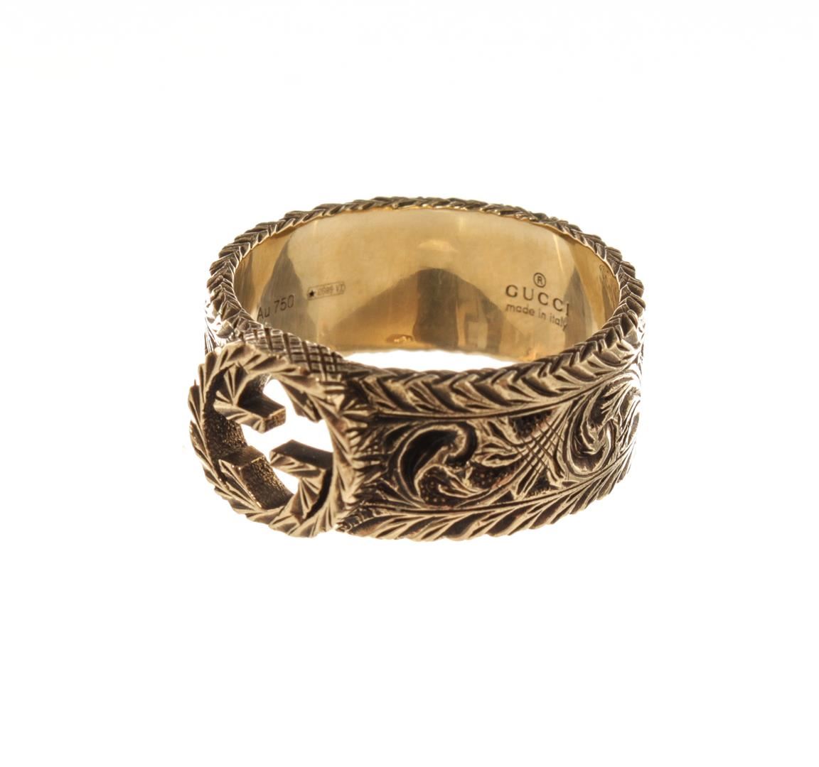 One Gucci Yellow Gold Interlocking G A. Item is sold AS-IS. All available information is listed in the description and shown in the photo. Gucci Yellow Gold Interlocking G A. Features gold hardware, with black trim.