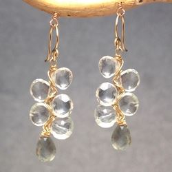 Metal: GoldWrapped aquamarine and moss aquamarine, about 1-1/2" Available in either 14K gold-filled, rose gold-filled, or sterling silver. All jewelry is entirely handmade in our studio in New York.