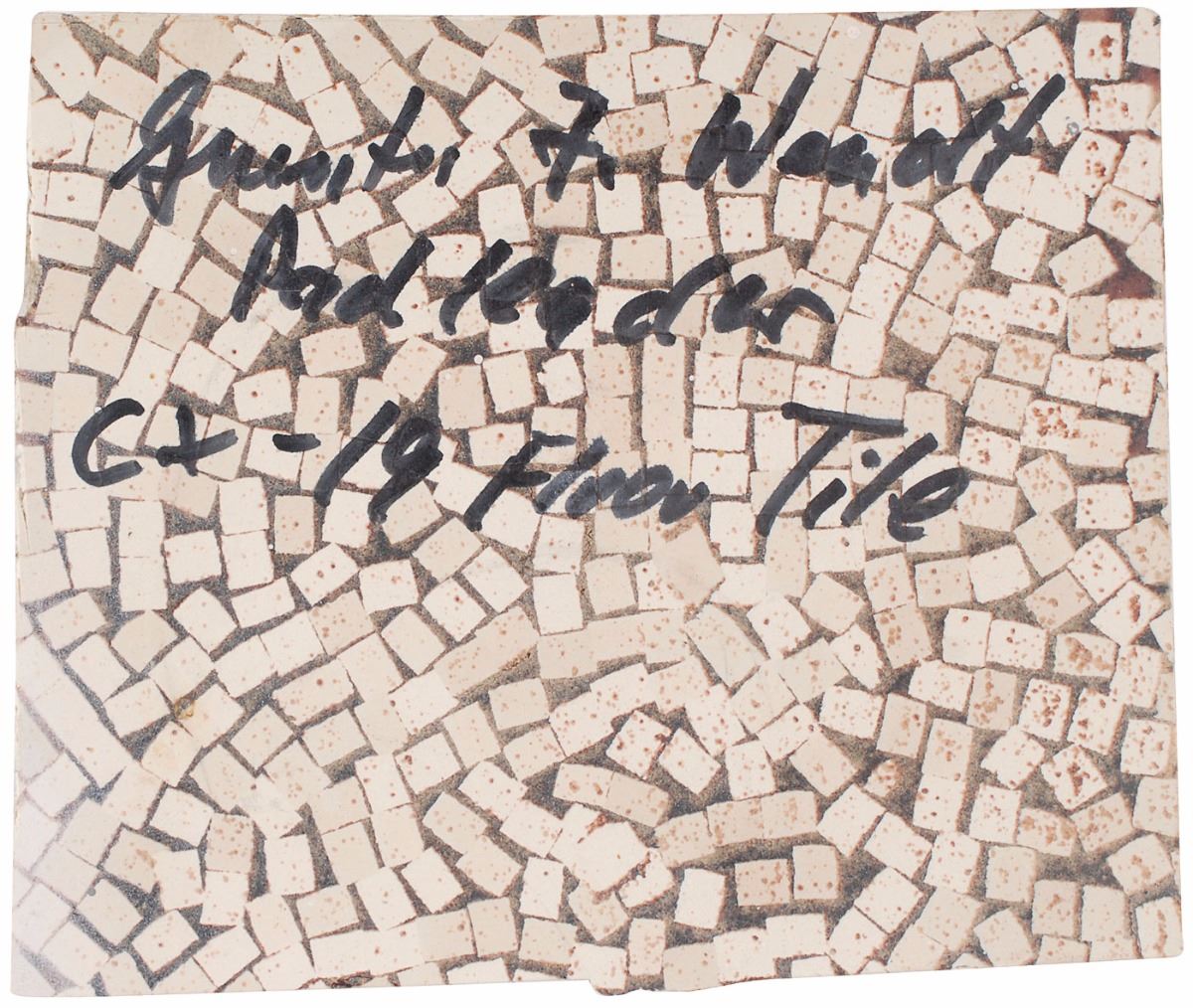 Floor tile removed from Cape Canaveral Air Force Station Launch Complex 19, 4.5 x 4, signed in black felt tip, “Guenter F. Wendt, Padleader, GT-19 Floor Tile.” In fine condition. Launch Complex 19 was the site used to launch all of the Gemini manned spaceflights and was closed following the departure of Gemini 12 on November 11, 1966. A highly unusual relic from the Gemini program, certified by the pad leader himself. The Leon Ford Collection.