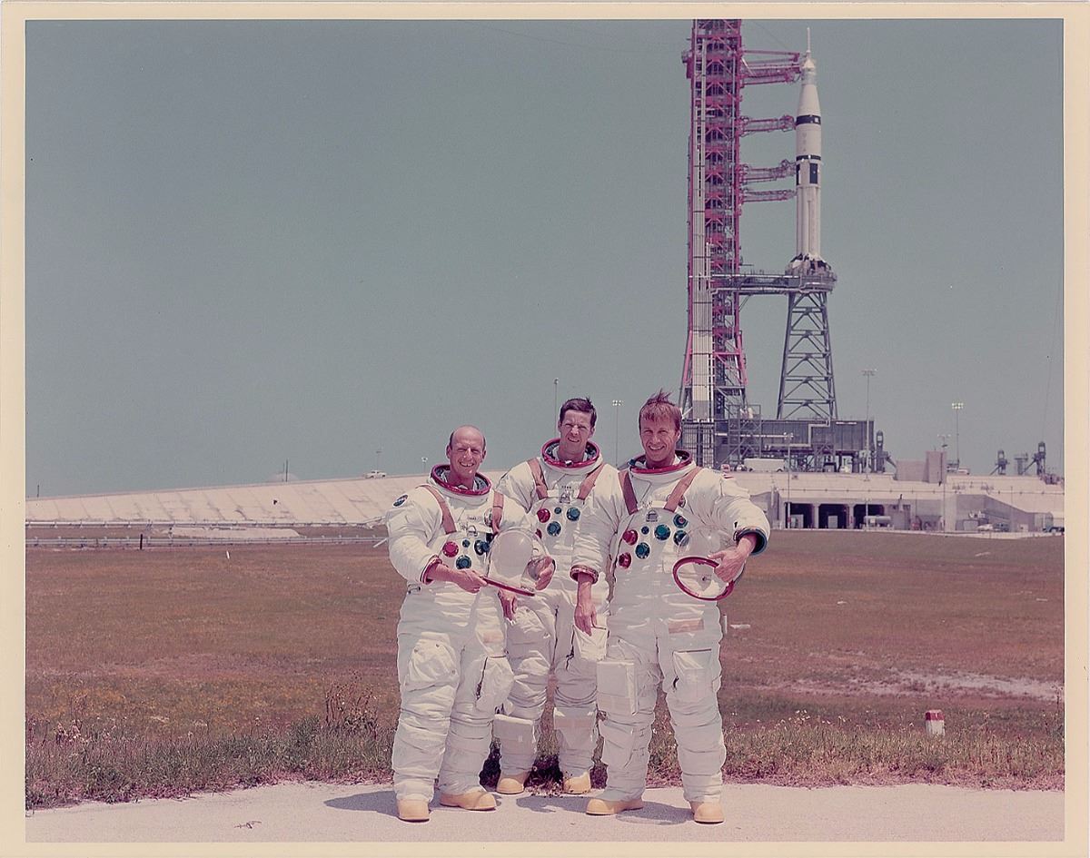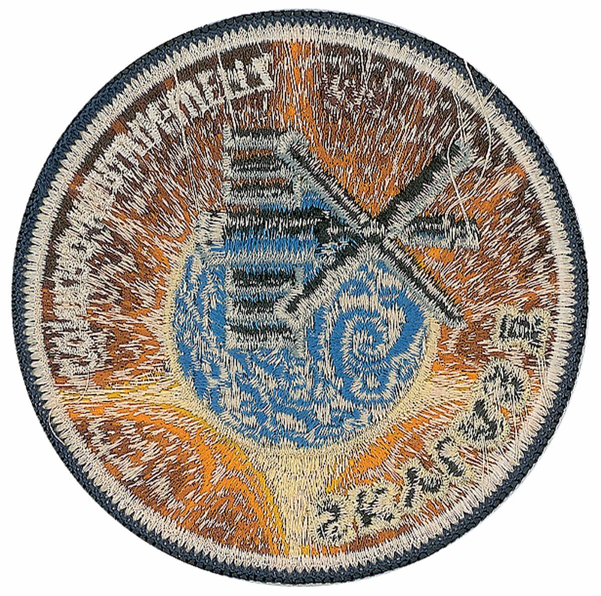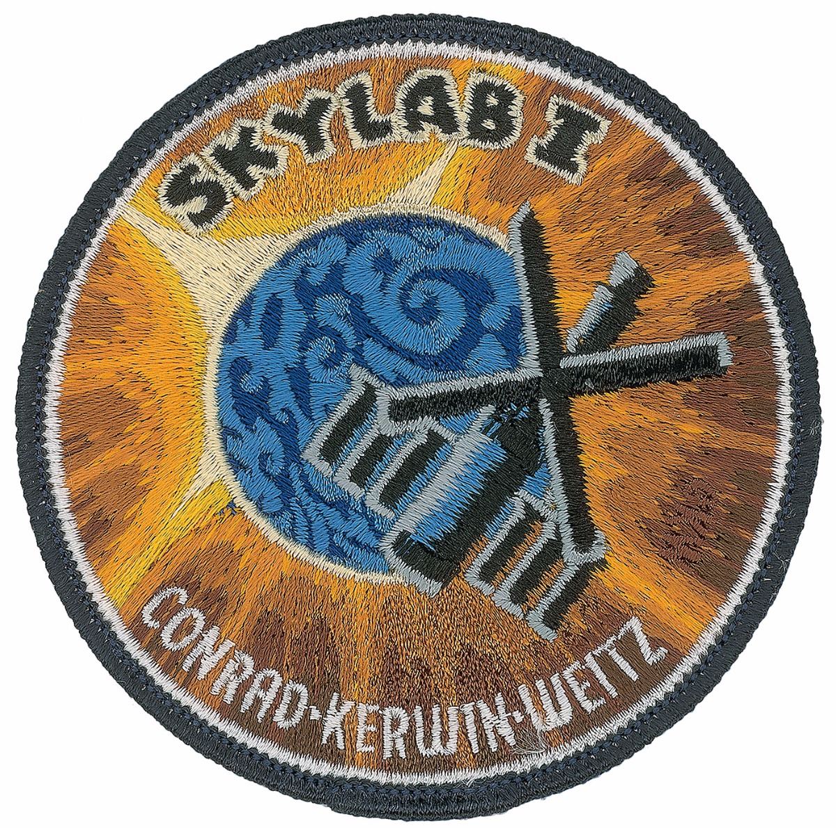 Skylab 2 embroidered patch manufactured by Lion Brothers, measuring 4? in diameter, presented to padleader Guenter Wendt by the crew prior to the flight. Also includes a color vintage satin-finish 10 x 8 photo of the crew, signed on the reverse by Wendt and stamped as being from his personal collection. In fine condition. The Guenter Wendt Collection, ex. Ken Havekotte.