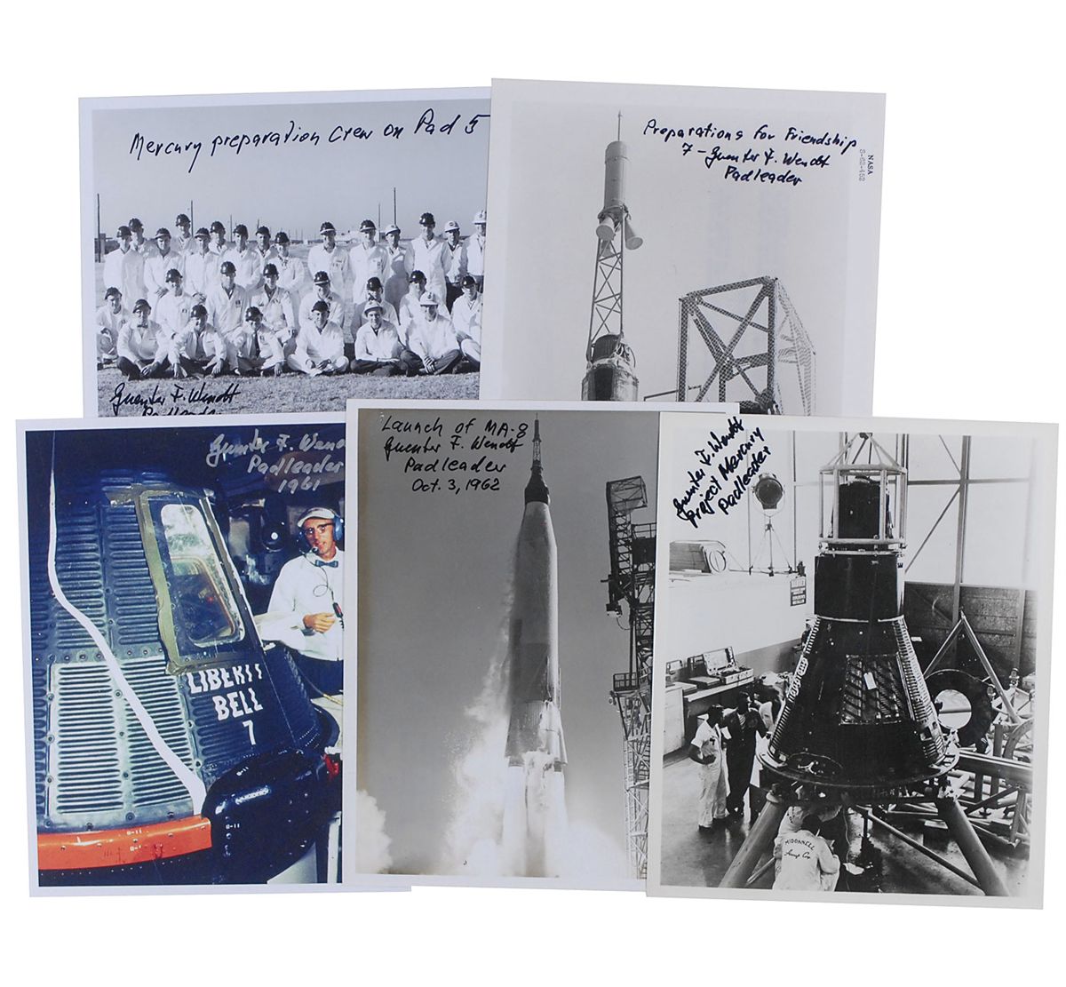 Five photos, various finishes, each signed in silver ink or black felt tip by Wendt, who adds brief notations to each photo. In overall fine condition.