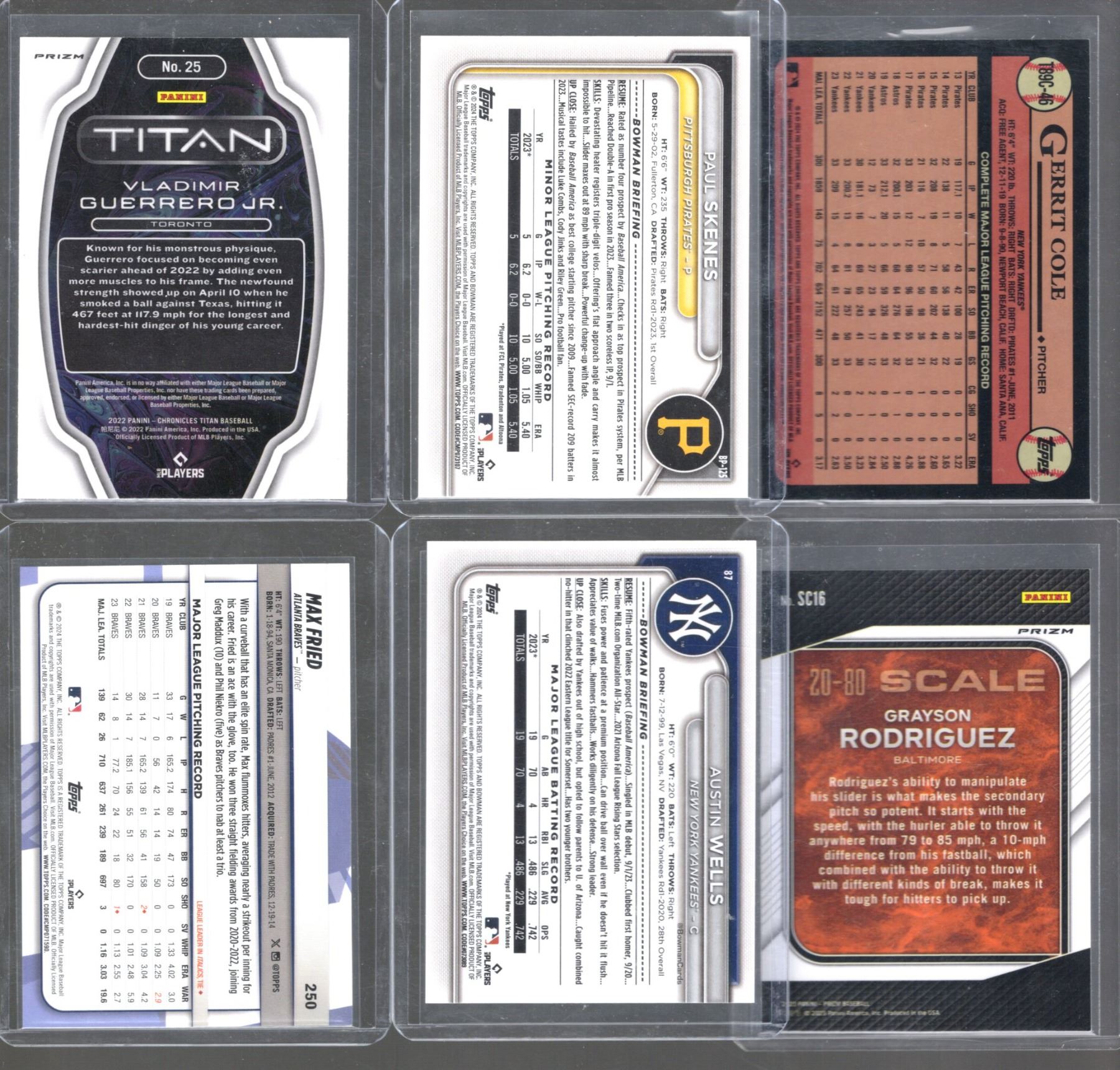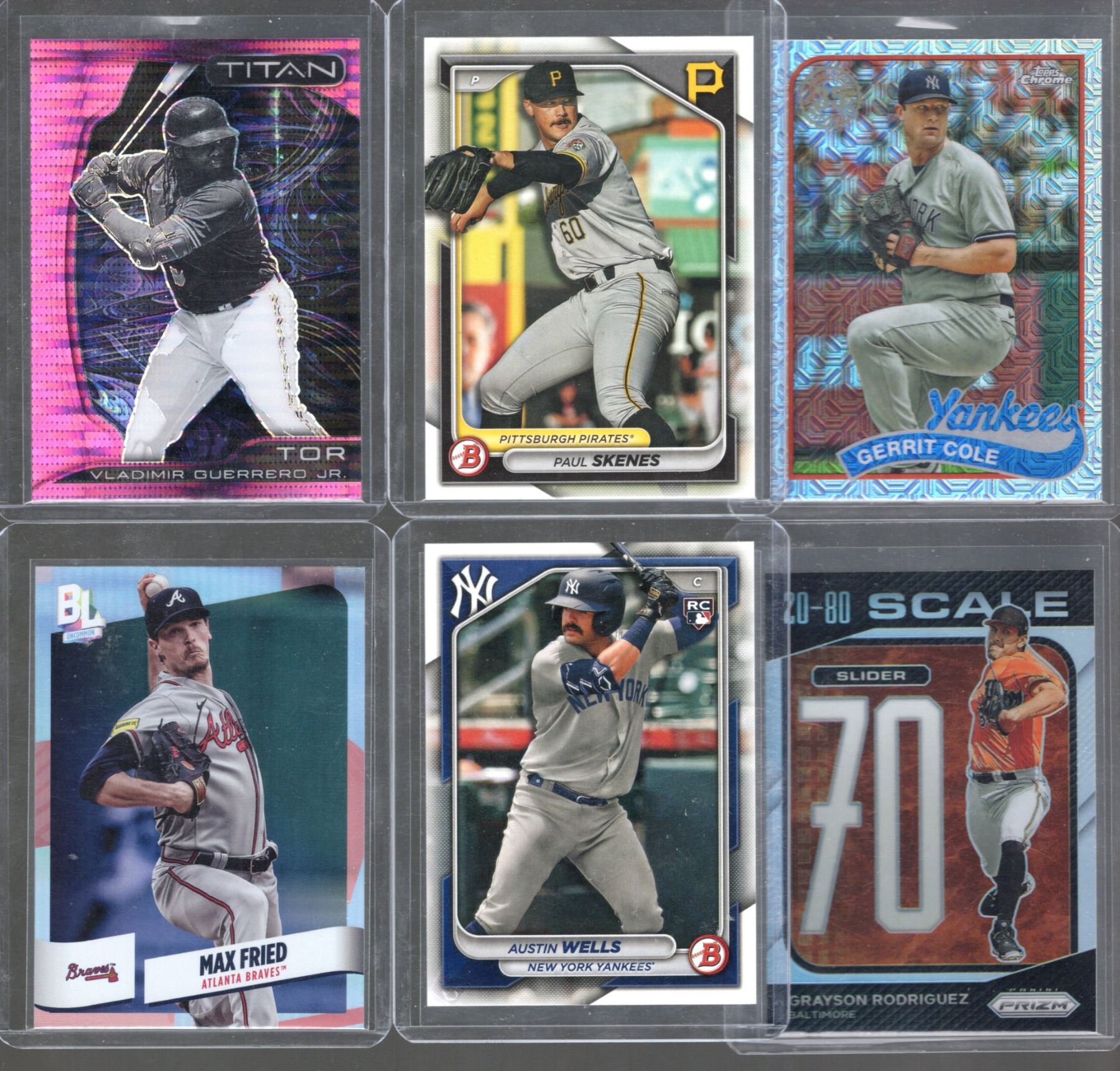Guererro Jr. Pink Pulsar, Skenes, Gerrit Cole Mega Box Mojo, Max Fried Rainbow Foil, Austin Wells RC, Grayson Rodriguez 20-80 Scale.