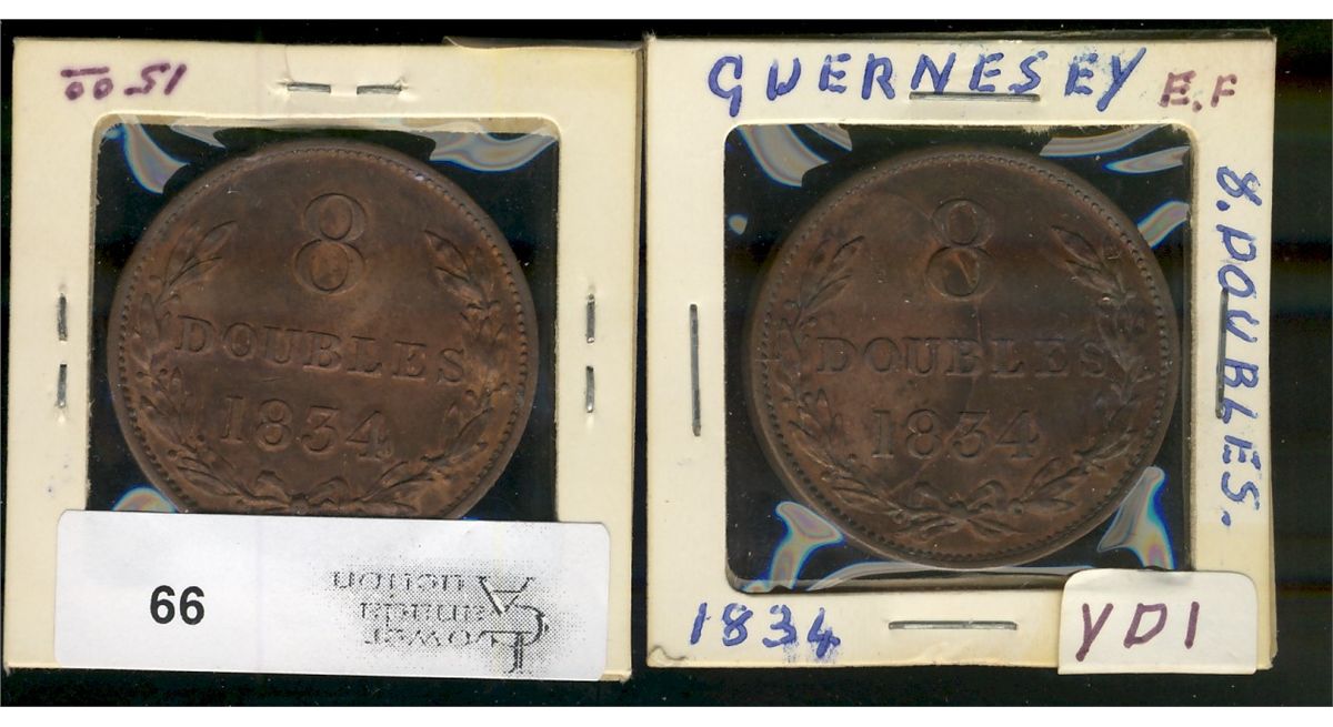 Guernesey, 8 Doubles, 1834, lot of 2 pieces EF or better