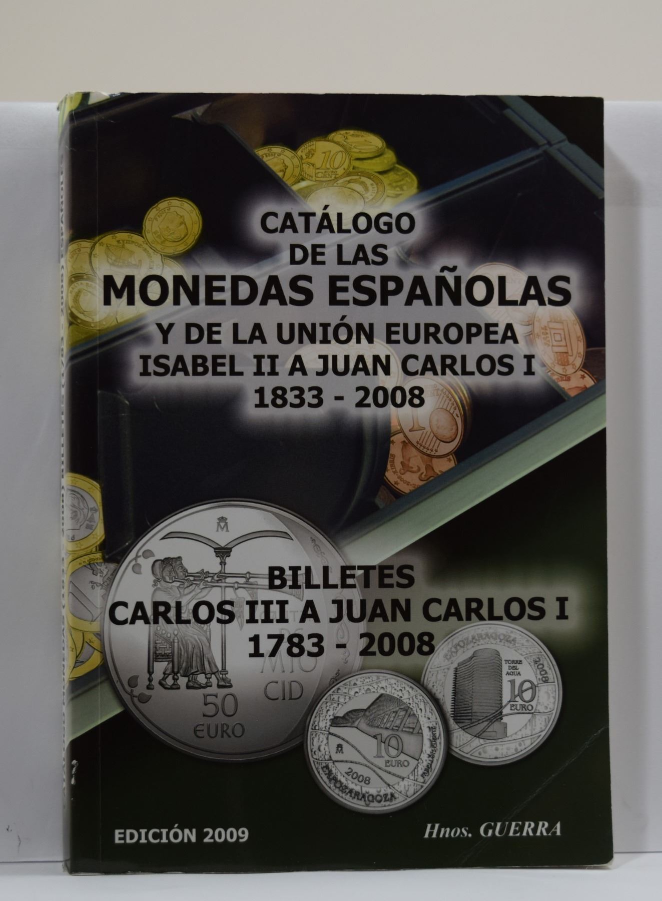 Guerra, Hnos. (ed.). CATÁLOGO DE LAS MONEDAS ESPAÑOLAS Y DE LA UNIÓN EUROPEA ISABEL II A JUAN CARLOS I 1833-2008. Hnos. Guerra. 2009. 12mo, 341 pages; Softcover; . Subject: Currency - Spain