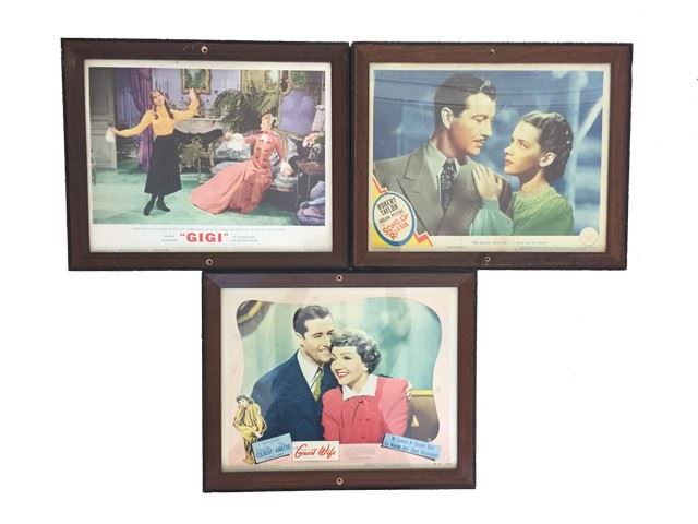 Guest Wife (1952), Gigi (1966), and Song of Russia (1943) collection of vintage, mini movie posters. These frames once hung on the Debbie Reynolds Dance Studio walls (frame approx. 12"x16").From the Debbie Reynolds/ Todd Fisher archives collection.