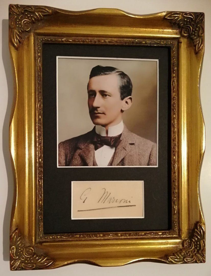 Guglielmo Marconi, 1st Marquis of Marconi was an Italian inventor, and electrical engineer, known for his pioneering work on long-distance radio transmission, development of Marconi's law, and a radio telegraph system. His autograph is mounted and framed in an antique gold style frame and is supplied with coa.