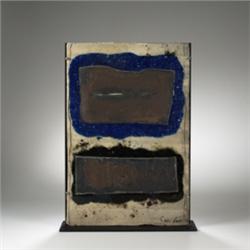 Guido Gambone plaque Italy, 1962 steel, ceramic 18.75"w x 5.5"d x 25.5"h Signed and dated lower right.