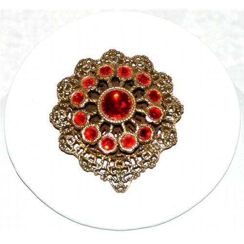<tr><td>Title:Guilded Filigree Brass Rhinestone Dress Clip</td></tr>