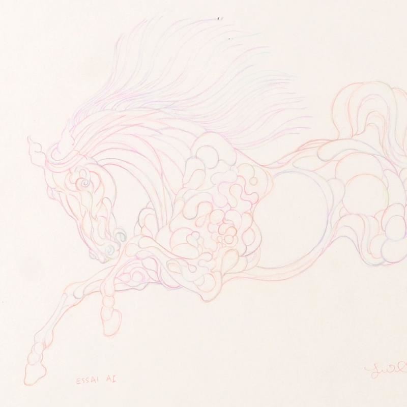 "Essai AI" is an original drawing on paper by Guillaume Azoulay, hand signed by the artist. This piece comes framed. Includes Letter of Authenticity. Measures approx. 29.5" x 25.5" (frame), 11" x 9" (image).