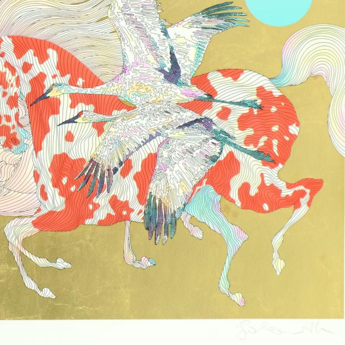 "It Takes Two" is a limited edition serigraph on paper with hand laid gold leaf by Guillaume Azoulay, numbered and hand signed by the artist. Includes Letter of Authenticity. Measures approx. 35" x 27.5" (border), 31" x 22" (image).