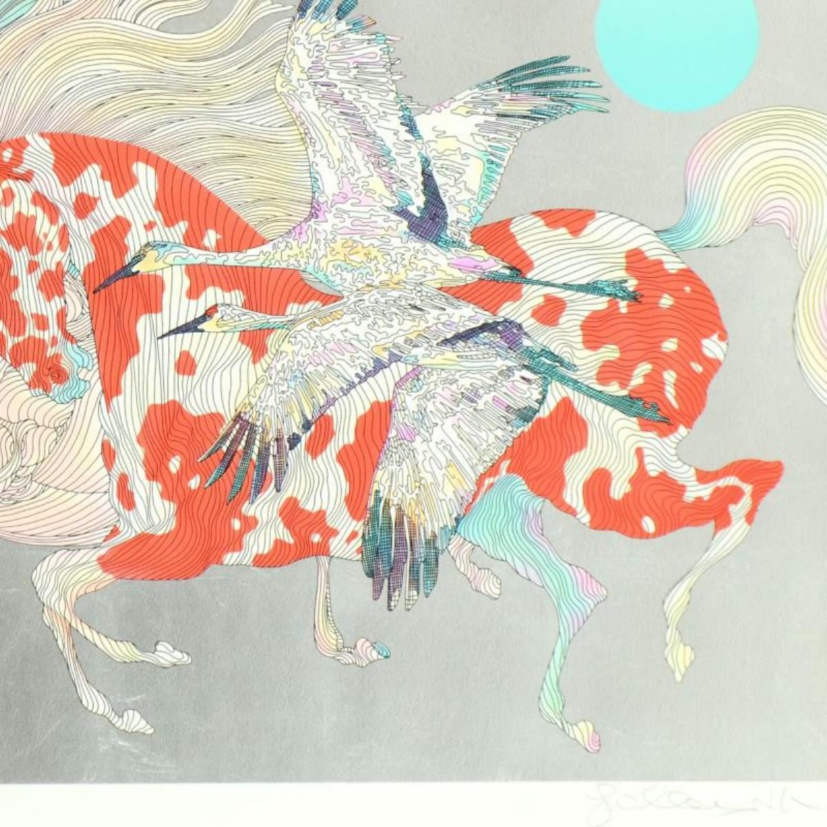 "It Takes Two" is a limited edition serigraph on paper with hand laid silver leaf by Guillaume Azoulay, numbered and hand signed by the artist. Includes Letter of Authenticity. Measures approx. 35" x 27.5" (border), 31" x 22" (image).