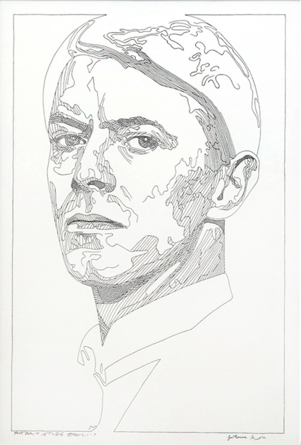 Artist: Guillaume Azoulay. Medium: Original Drawing on Paper. Title: Portrait (Bowie). Size (Unframed): 14" x 10". Measures approx. (Framed): 21" x 16". Certificate of Authenticity: Is included. Additional: Custom framed. Reference# 17295.