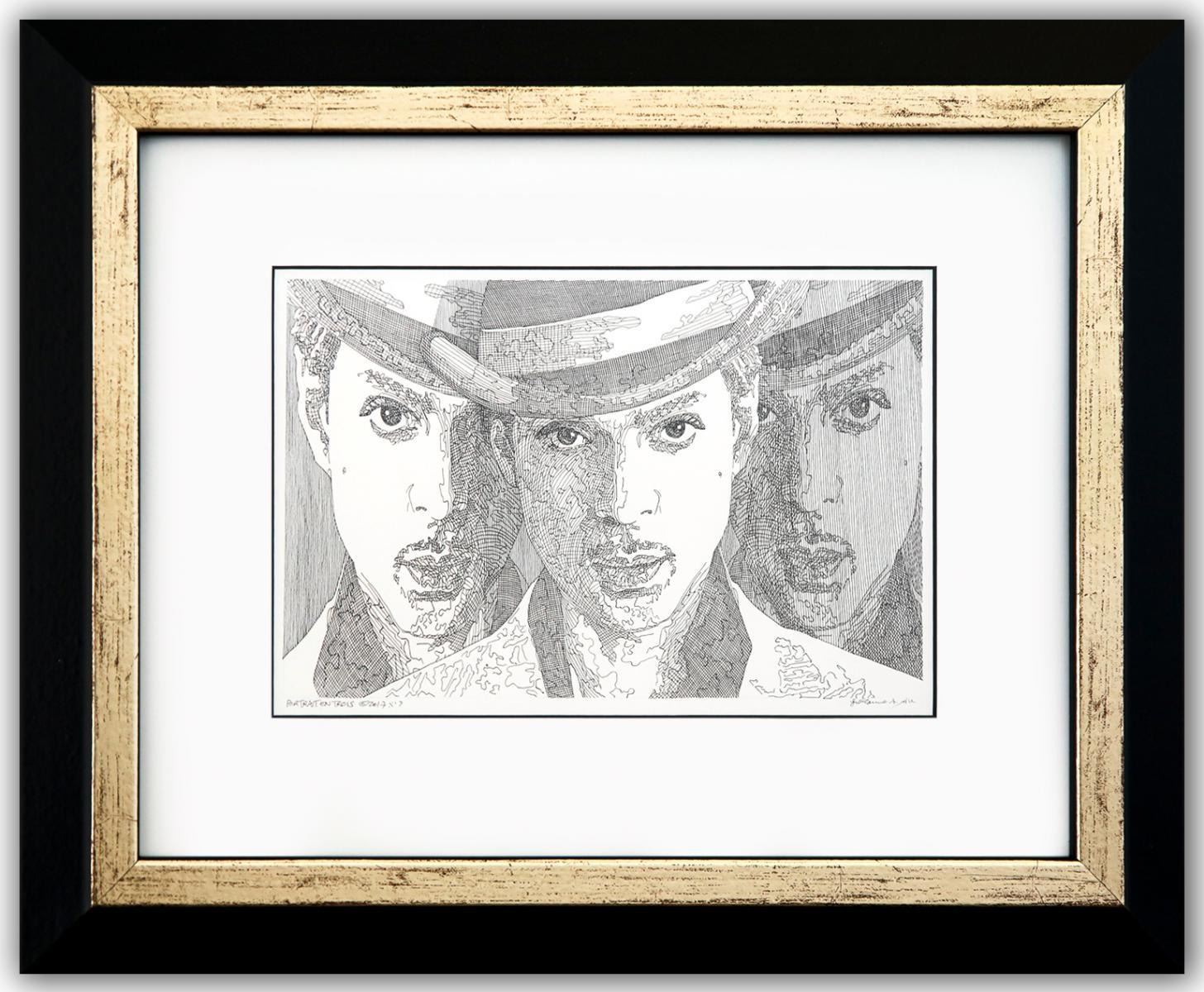 Artist: Guillaume Azoulay. Medium: Original Drawing on Paper. Title: portrait en trois ( Prince). Size (Unframed): 11" x 16". Measures approx. (Framed): 20" x 25". Certificate of Authenticity: Is included. Additional: Custom framed. Reference# 17297.