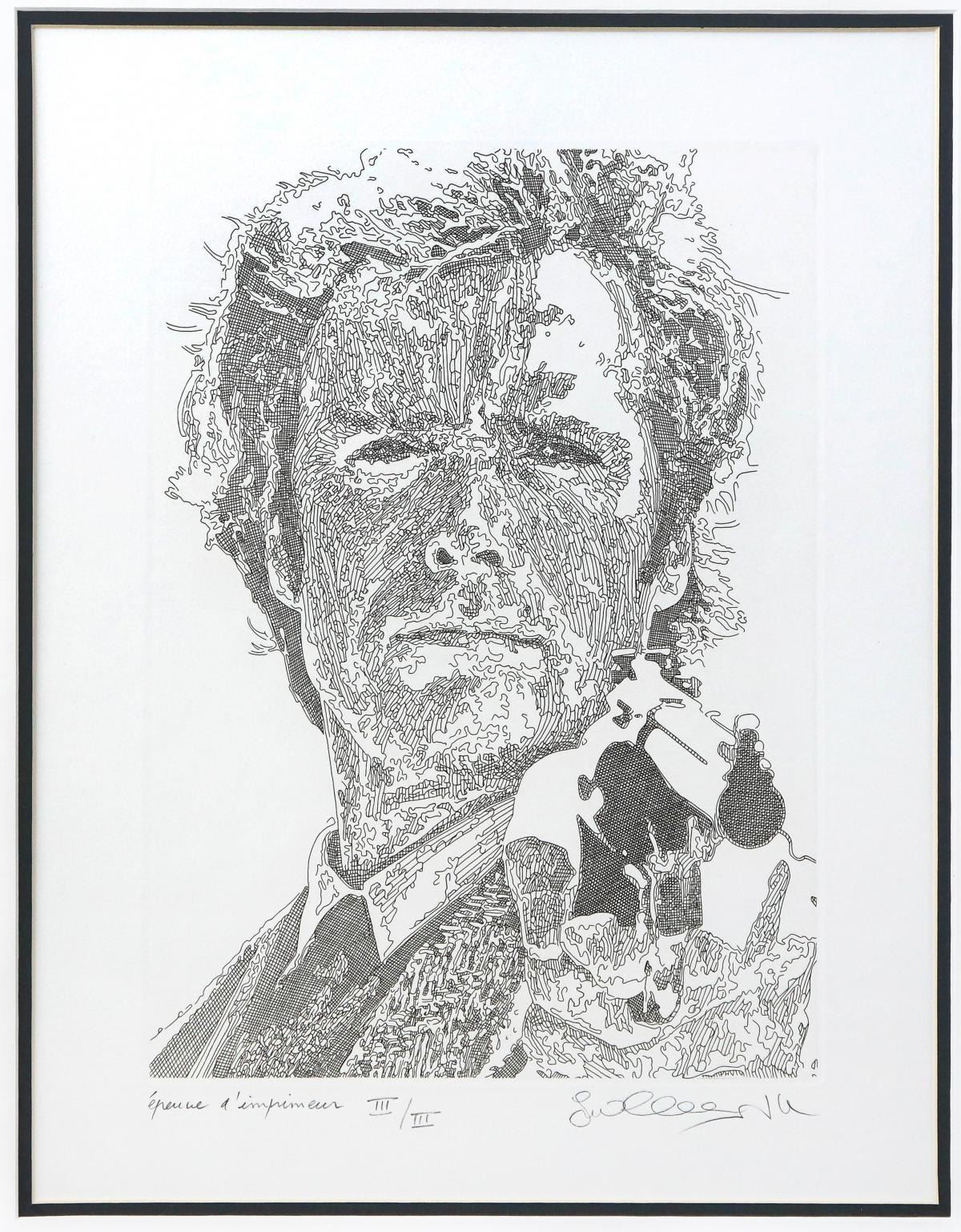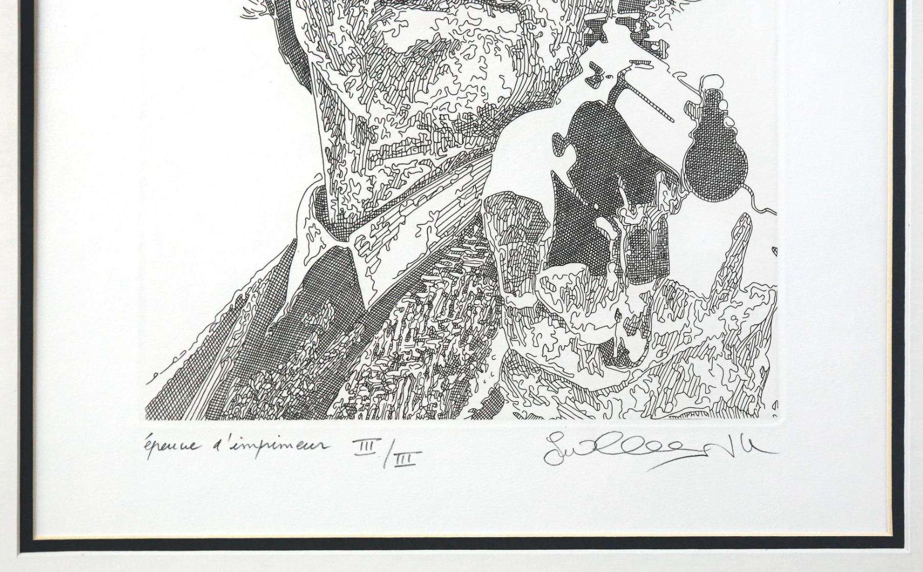 Artist: Guillaume Azoulay. Medium: Original Etching. Size (Unframed): 18" x 14". Measures approx. (Framed): 28" x 24". Certificate of Authenticity: Is included. Additional: Custom framed. Reference# 19213.
