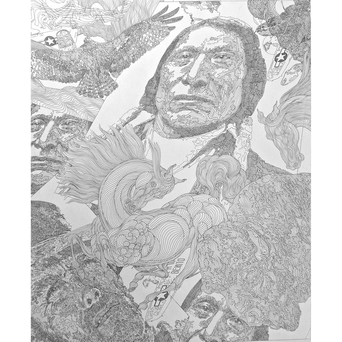 Guillaume Azoulay Original " Indian portrait" is 16.5 x 13.5 , paper is 17 x 14.