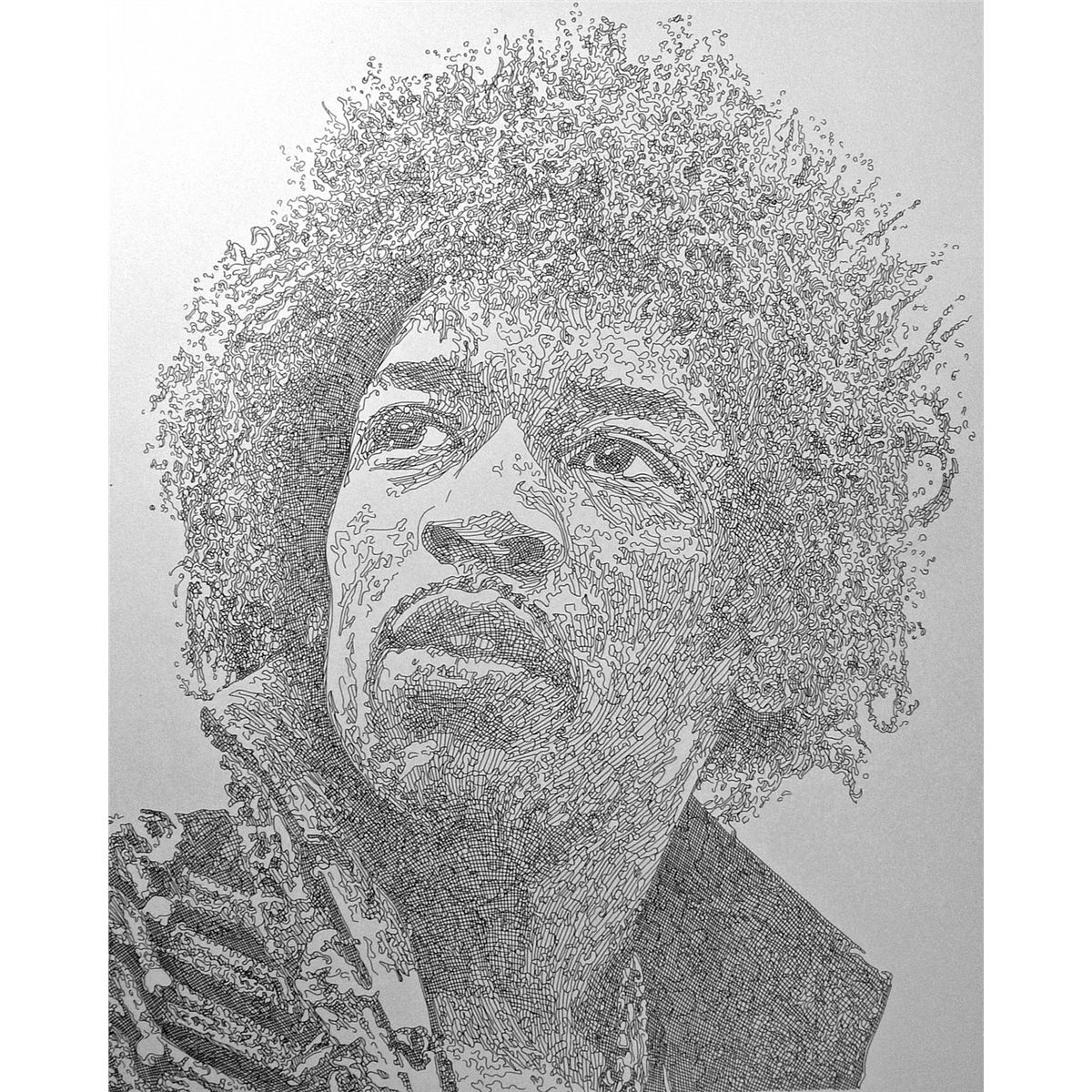 Guillaume Azoulay Original "Jimi Hendrix" is image size 18 x 15 , paper size 24x18