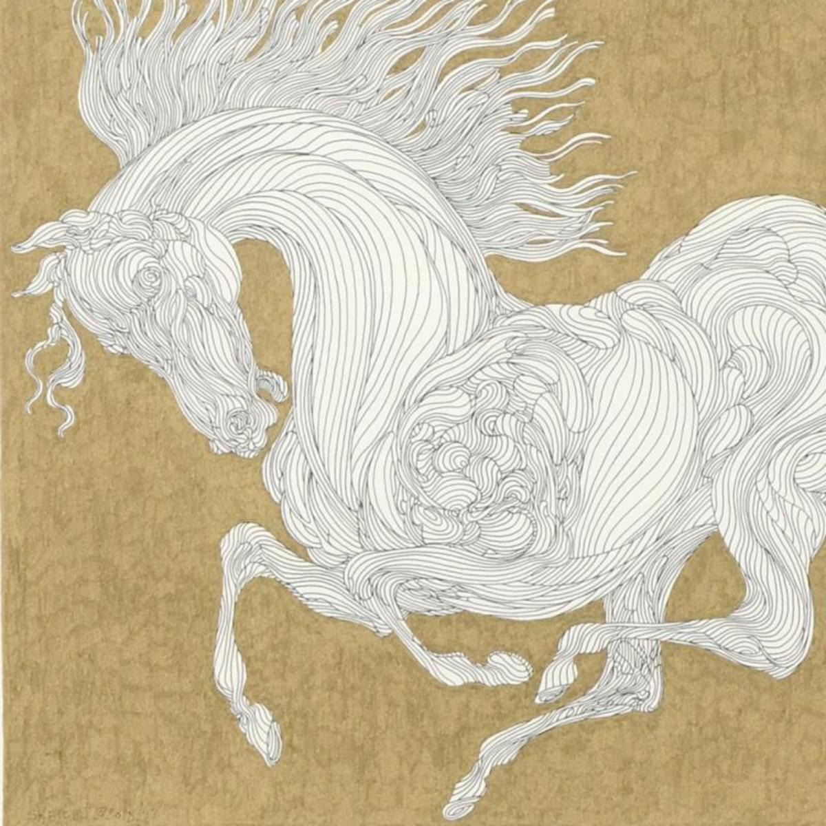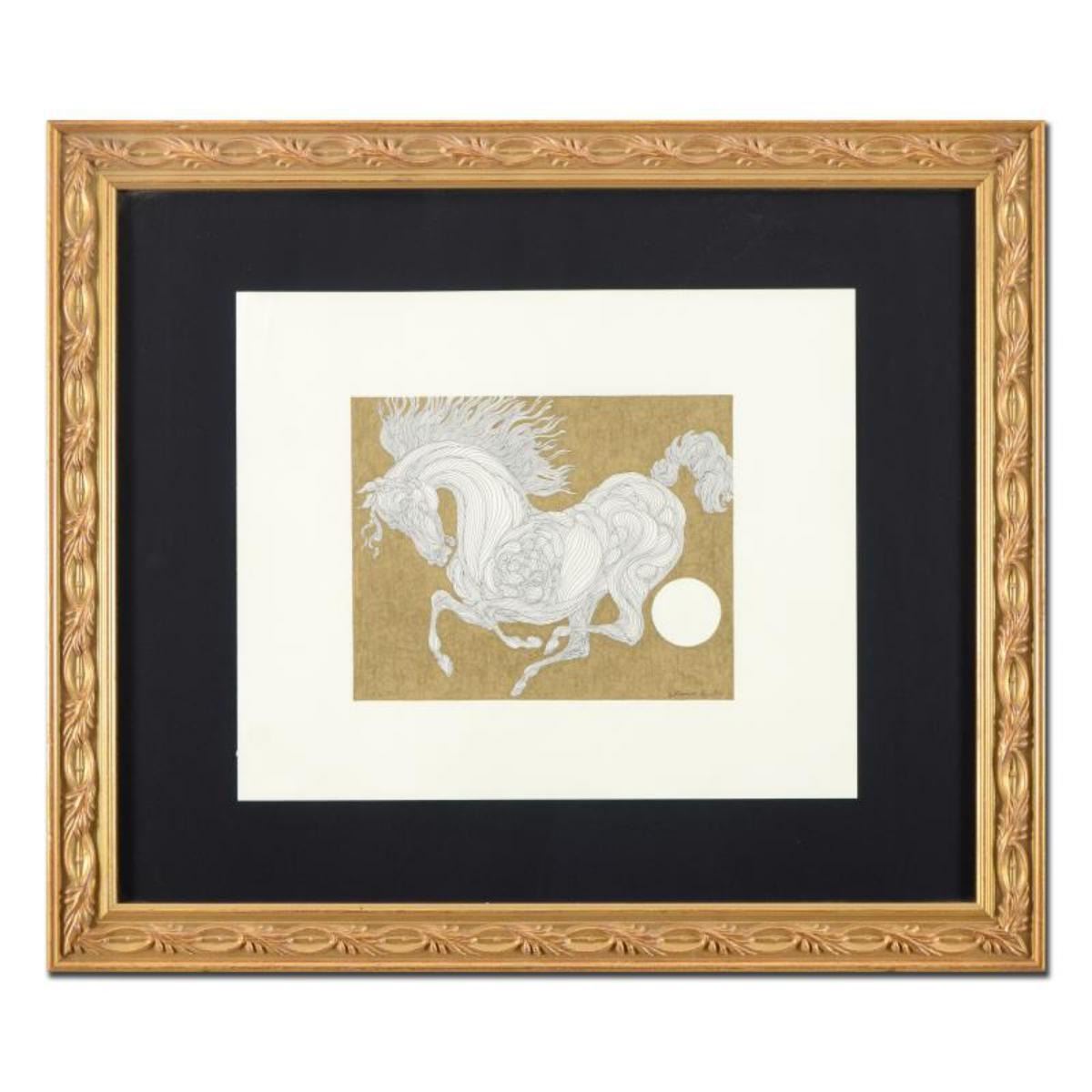 "Sketch" is an original pen and ink drawing on paper with hand laid gold leaf by Guillaume Azoulay, hand signed by the artist. This piece is framed. Includes Letter of Authenticity. Measures approx. 27" x 23" (frame); 10" x 8" (image). Reference #: 239513