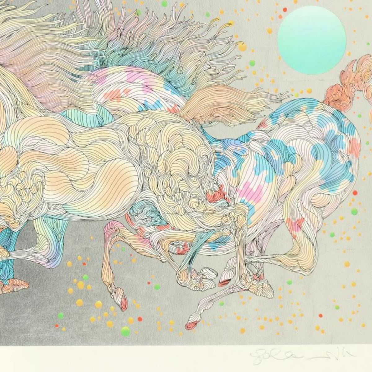 "Stardust" is a limited edition serigraph on paper with hand laid silver leaf by Guillaume Azoulay, numbered and hand signed by the artist. Includes Letter of Authenticity. Measures approx. 35" x 25" (border), 31" x 19" (image). Reference #: 246861.