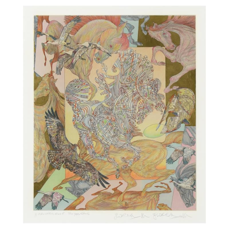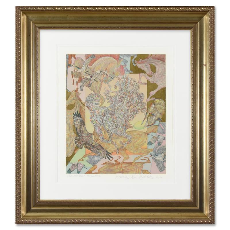 "Troyen" is a one-of-a-kind hand watercolored publisher's proof on paper with goldleaf by Guillaume Azoulay, numbered 1/1 and hand signed by the artist. This piece comes custom framed. Includes Letter of Authenticity. Measures approx. 31" x 34" (frame), 15" x 18" (image).