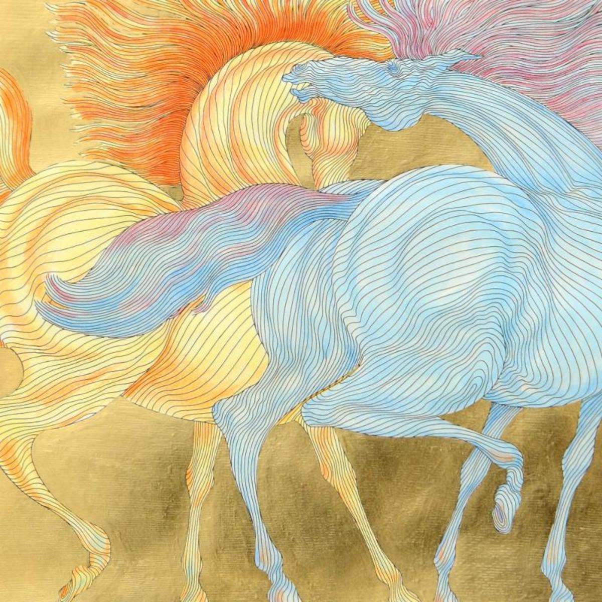 Guillaume Azoulay, "Tryst" Limited Edition Hand-Watercolored Etching with Hand Laid Gold Leaf, Numbe