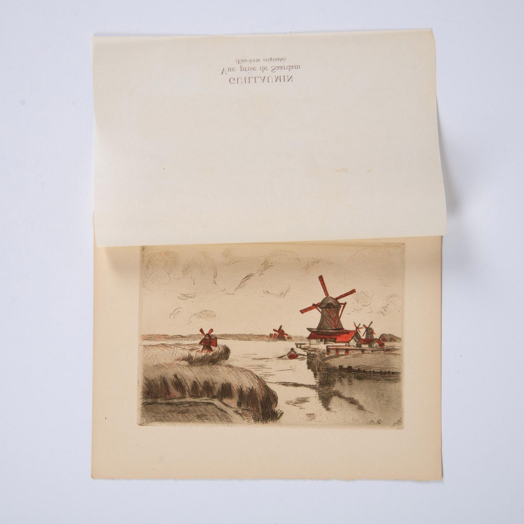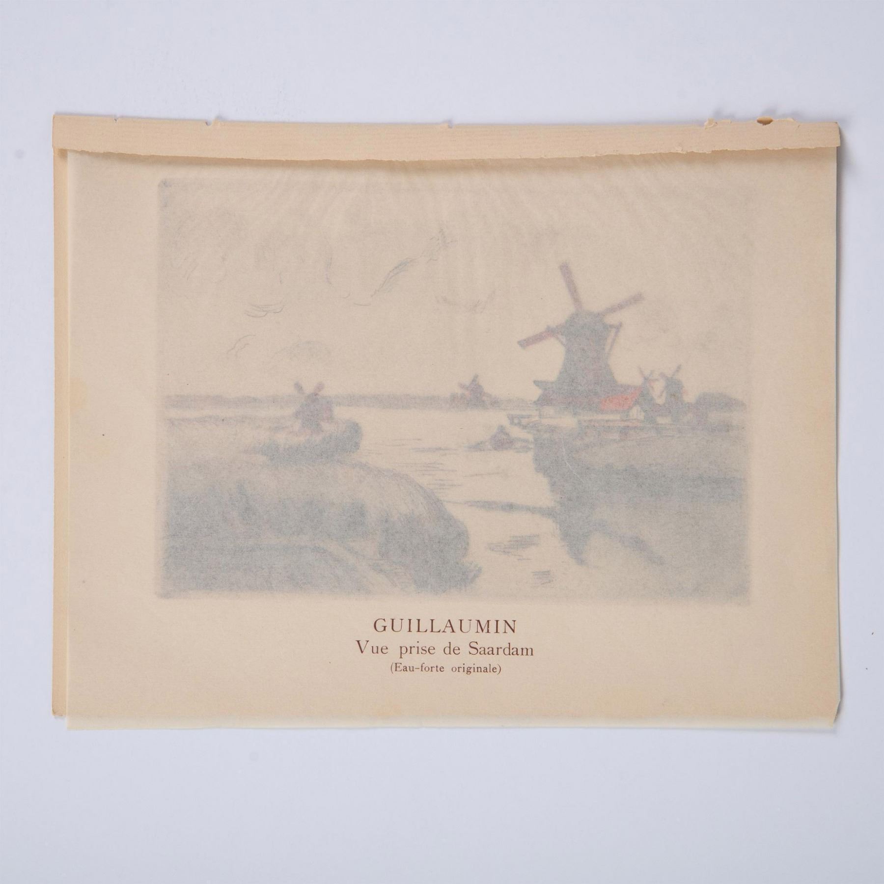 Antique original color etching on wove paper entitled Vue prise de Saardam (View taken from Saardam) after French Post-Impressionist artist Paul Cezanne. Etched for the limited edition portfolio Histoire des peintres impressionnistes by Theodore Duret, published by H. Floury, Paris 1906. Artists signature in plate on lower right: A G. Includes protective cover sheet.
