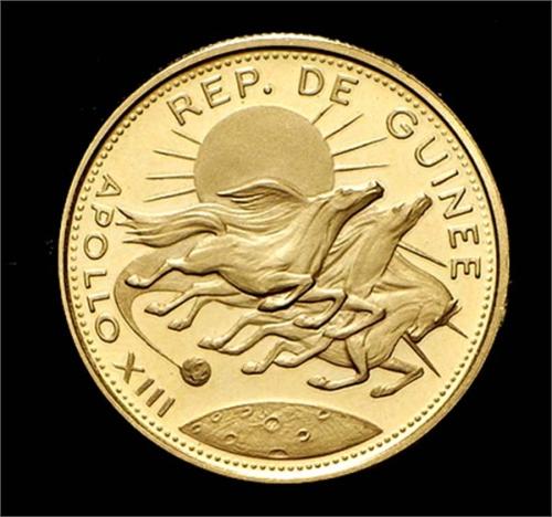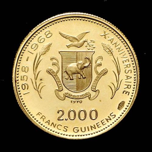 Guinea - 2000 franchi 1970 commemorativa del X anniversario dell'indipendenza e dell'impresa di Apollo XIII Minime tracce di manipolazione sui fondi