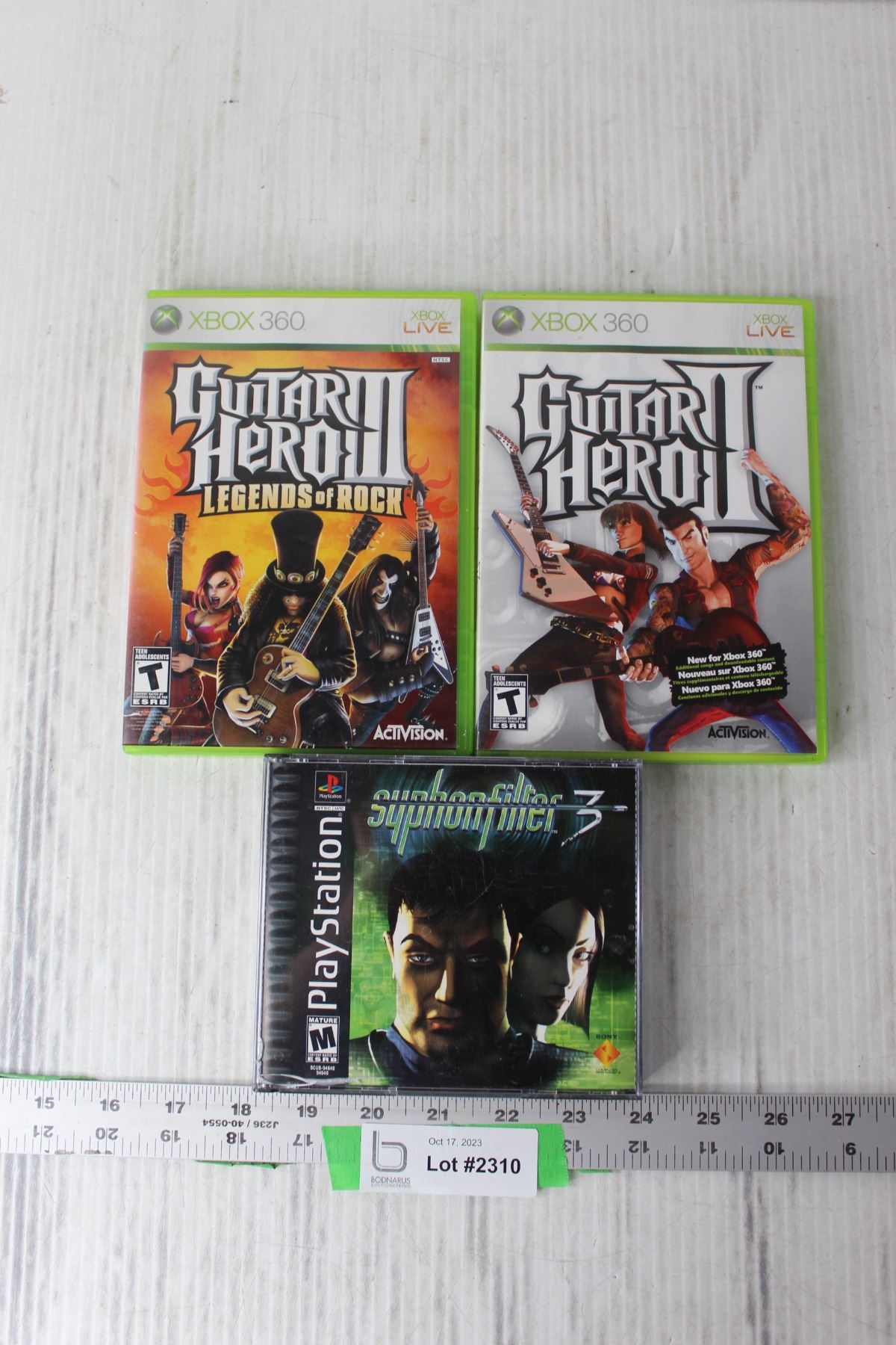 Guitar Hero 2 and 3 on Xbox 360 and Misc. PS1 Game (PS1 Game Missing Disc)