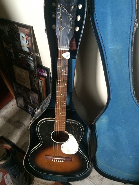 Slammer Hamer electric guitar with stand and soft case, Crate amp, Marshall The Guv'nor, Sabine guitar tuner, and vintage acoustic guitar with hard case. Nice set just in time for the Holidays!