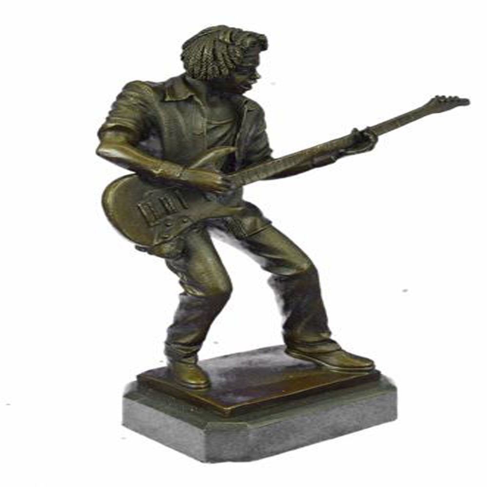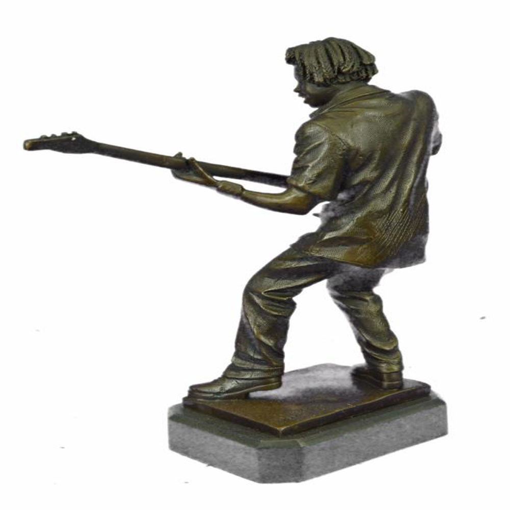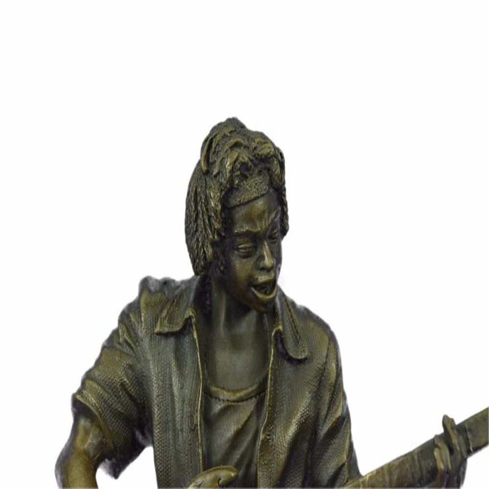 This amazing and creative abstract of Rick James playing his Guitar is exquisite. He is made with the creation of your imagination. His eyes are concentrating on each string he touches, making sure he dont make a mistake. The artist only captures the man head, face, hands, guitar, and blazers collar. This very fine and unique abstract was cast using the ancient old Lost Wax Method stained in the brown patina finish for preservation and mounted atop a marble base. Dimensions: Height 11 X Width 9 inches. Weight: 7 LBS.
