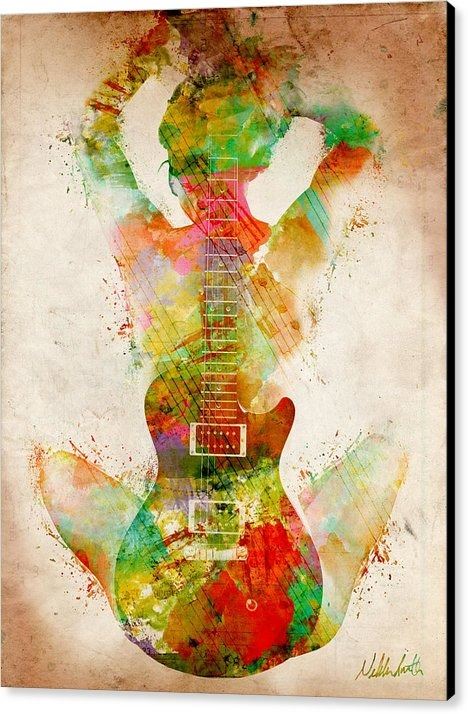 Guitar Siren canvas print by Nikki Smith. Dimensions are 27 inches by 36 inches. Your canvas print will be delivered to you ready to hang with pre-attached hanging wire, mounting hooks, and nails.