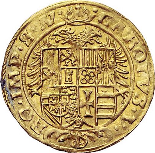 Gulden de oro. S/F. Kaufbeuren. A/ CAROLVS. V. RO. IMP.SE.AV. R/ MONETA.AUREA.RAVFVRENSIS. FR-1420. EBC.