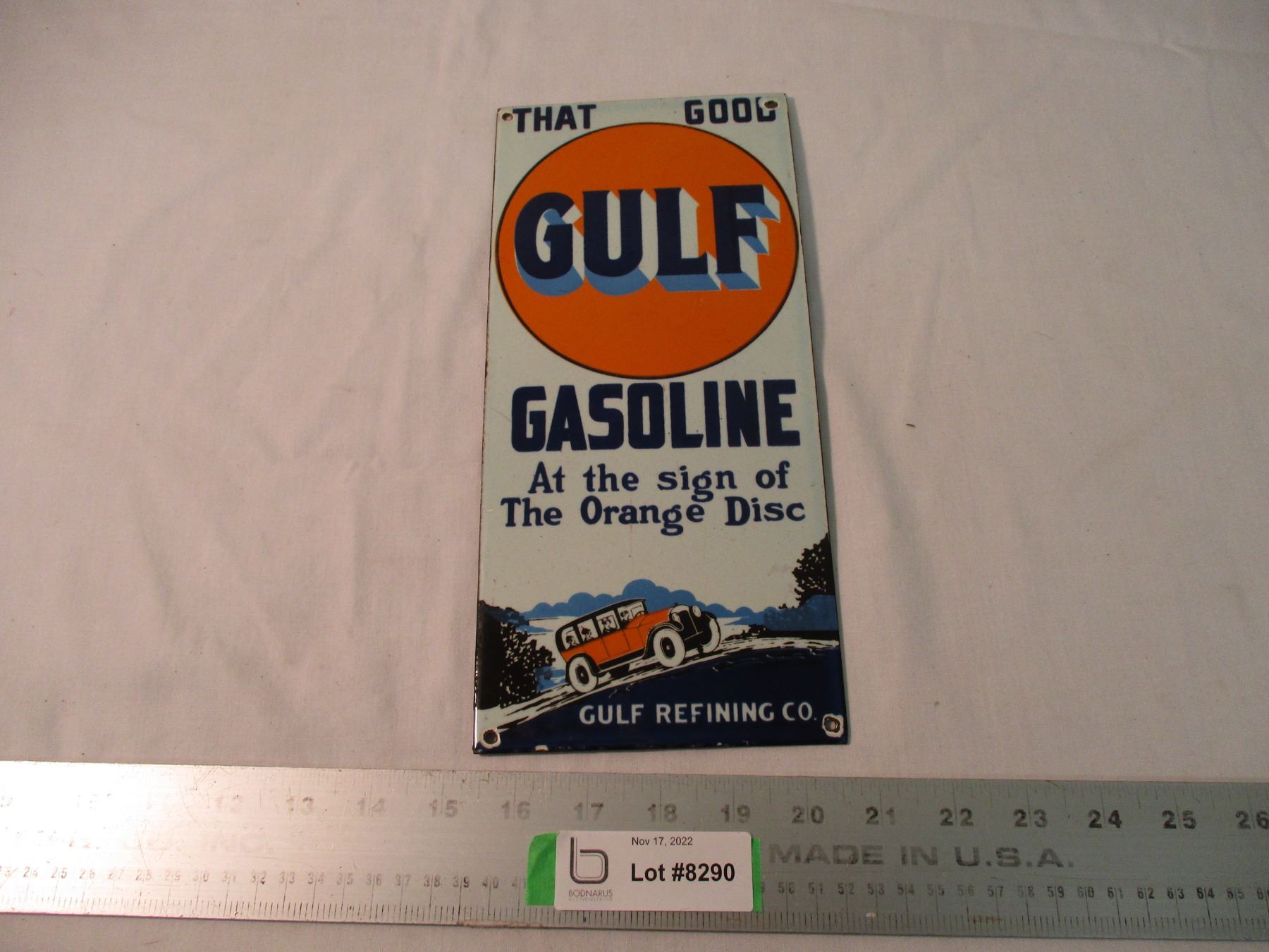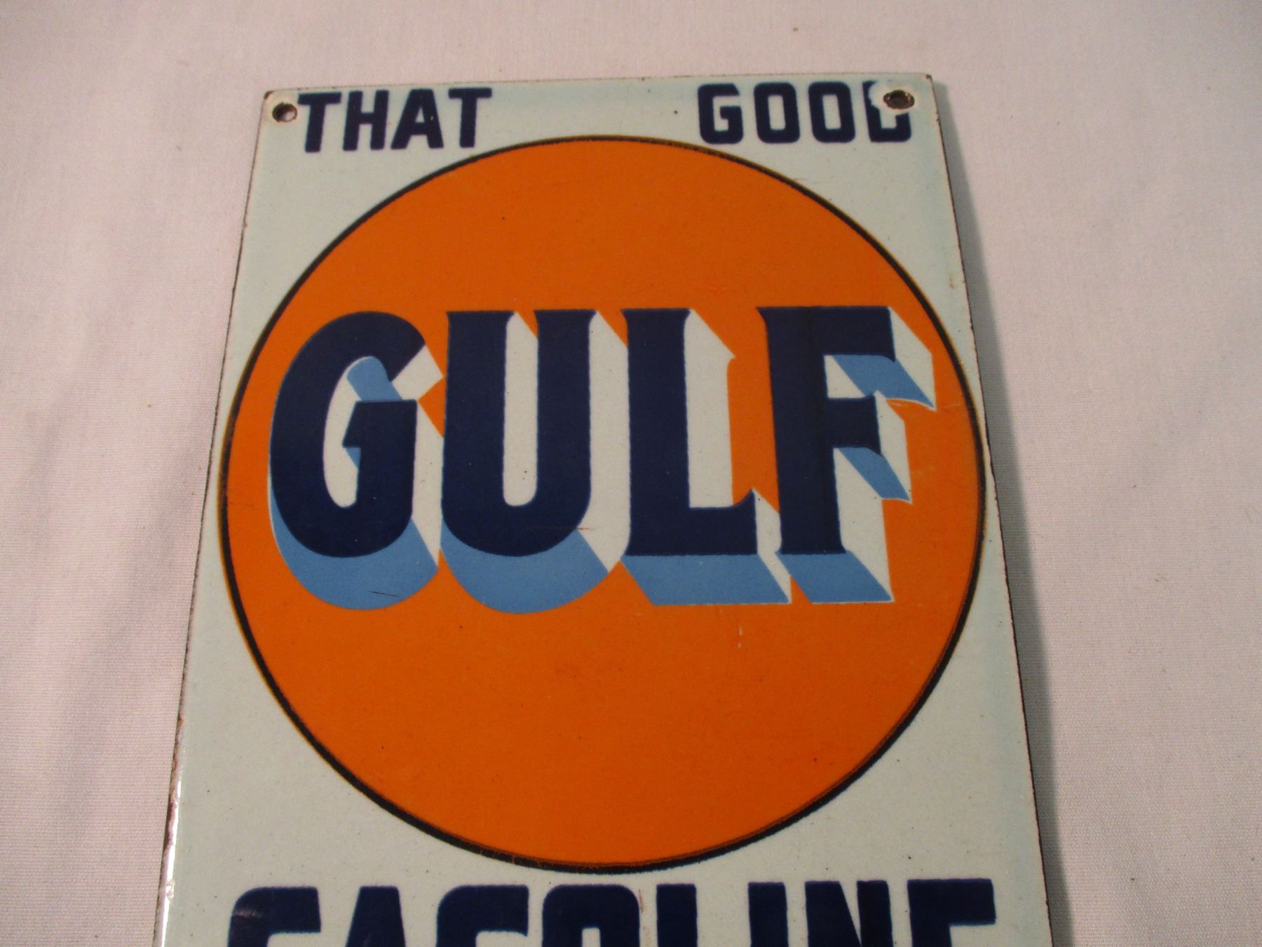 Gulf Gasoline Porcelain Sign - 11.5x5.25
