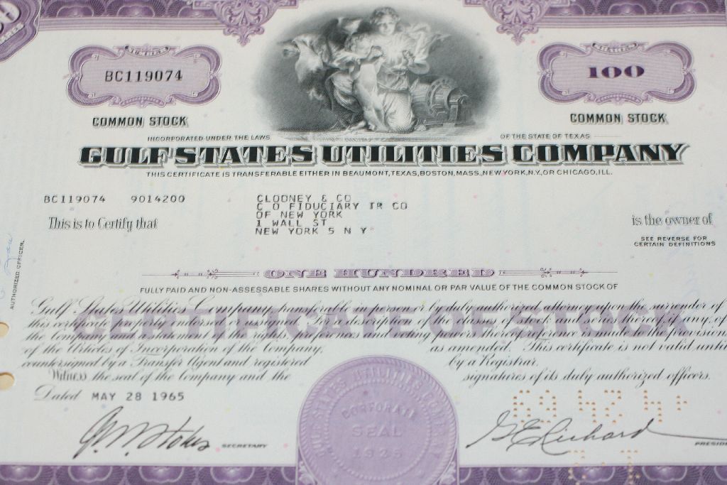 Gulf States Utilities Co. Stock Certificate Dated 1965