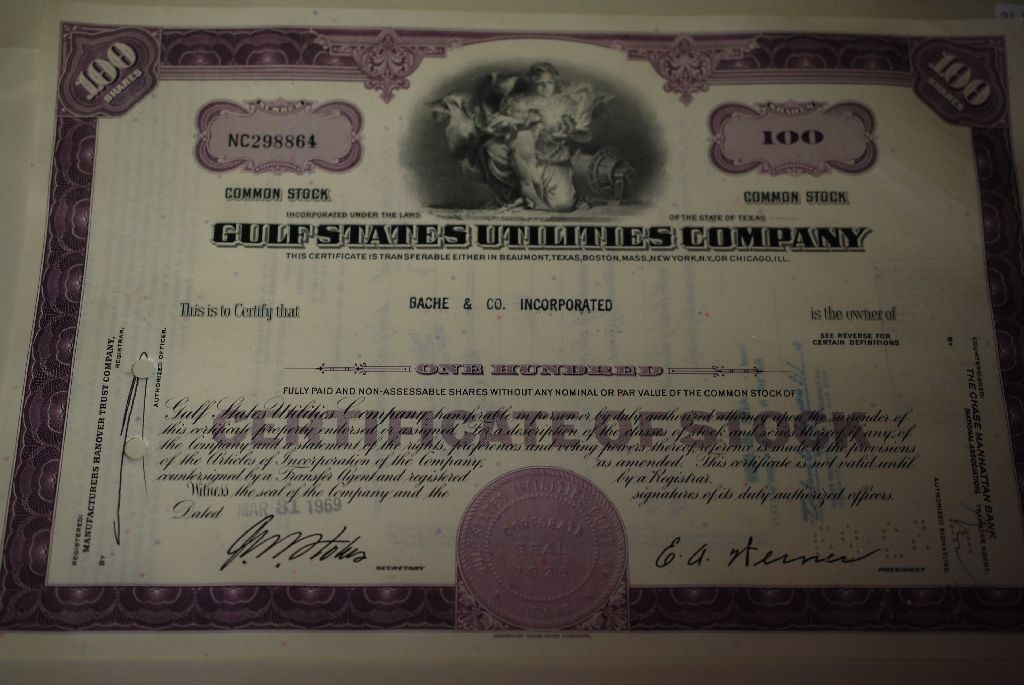 Gulf States Utilities Co. Stock Certificate Dated 1969; EST. $10-20