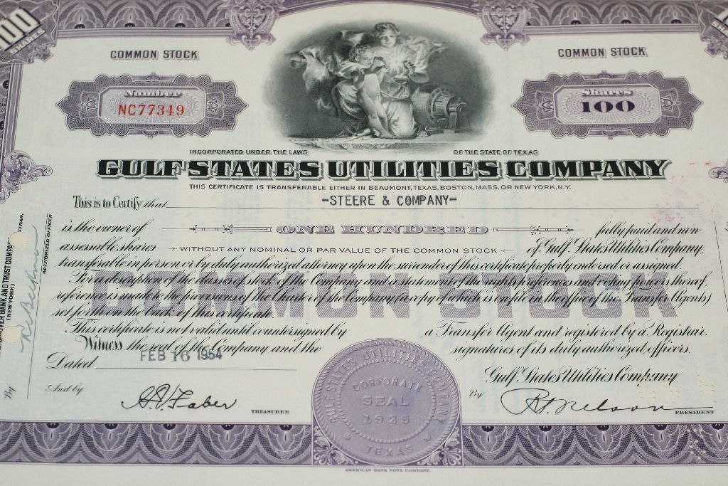 Gulf States Utilities Co. Stock Certificate dated 1954