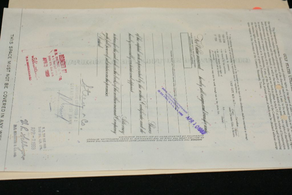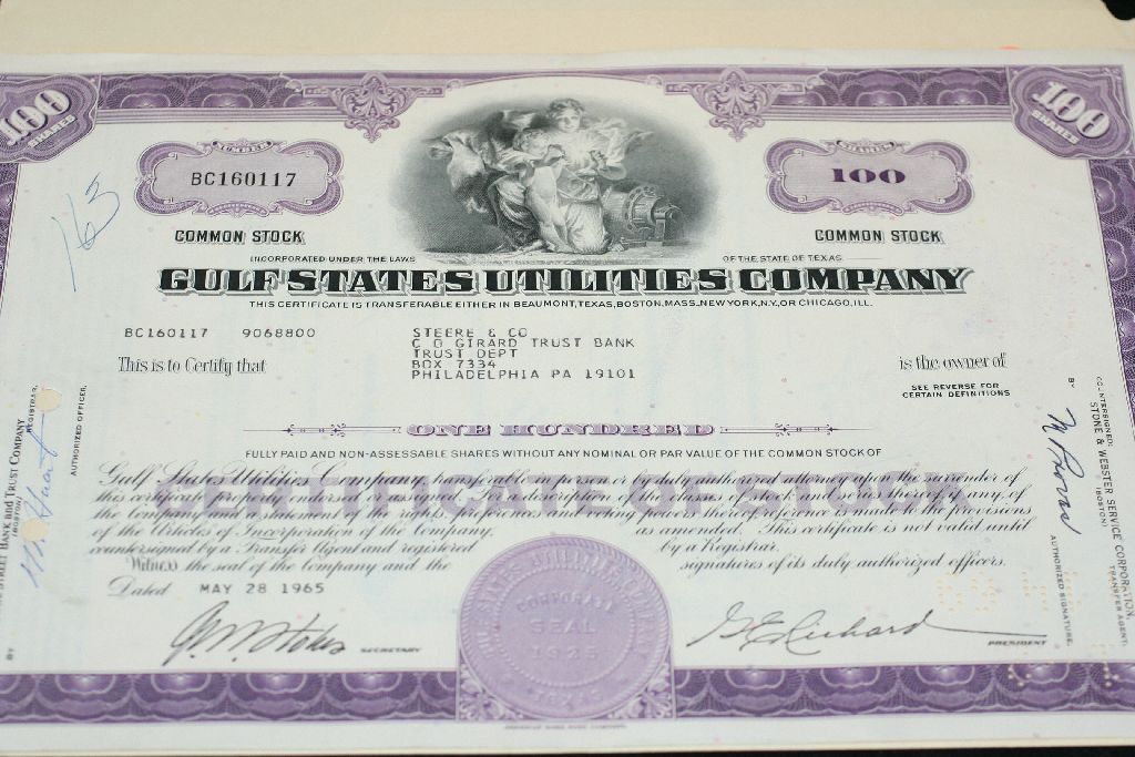 Gulf States Utilities Company Stock Certificate Dated 1965