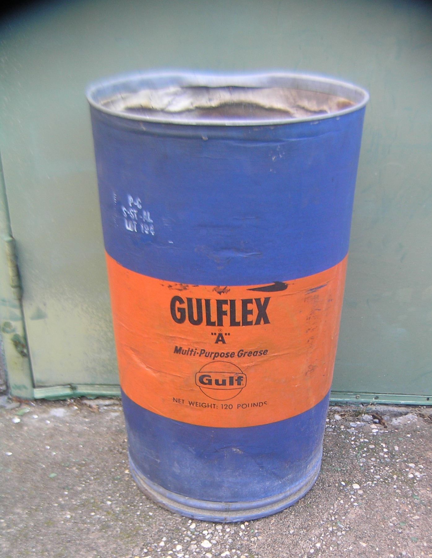 Gulf flex oil company muiltpurpose grease container 15x26 Nice vintage advertising piece est. value $75.00-$100.00