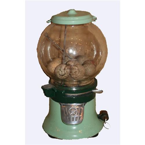 Gumball - Two tone green repaint. Star flapper. Barrel lock with key. Filled with golf balls.