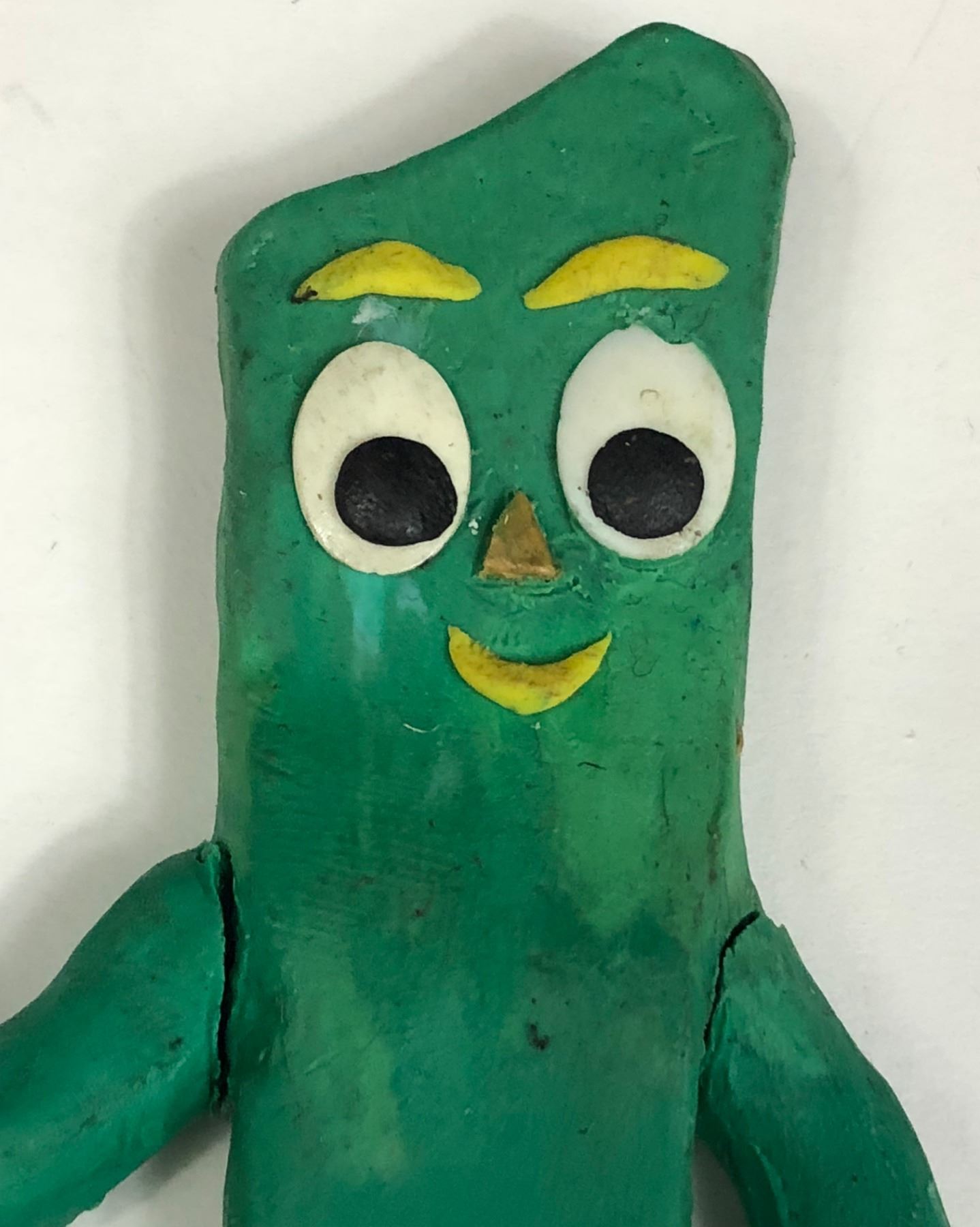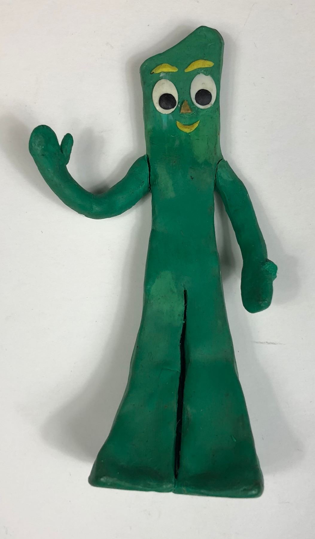 Original screen used stop-motion Gumby puppet used in the 1980s claymation animated television series, the continuous adventures of Gumby and his pals.
