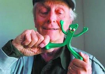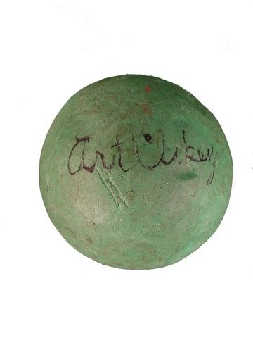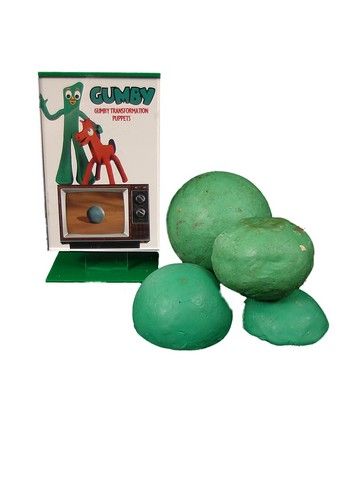 The Godfather of clay animation was Art Clokey, perhaps best known for his years of surrealistic Gumby shows. In fact, he invented the technique, and the name "Claymation", (and his estate still holds the trademark on both the name and process to this day). Here is an extremely rare set of clay puppetry from what many call the "Real" Gumby TV Series Intro used again and again for his vast series of "Gumby Adventures". In the beginning of the intro the letters spell out "Gumby Adventure". They then fold up into a ball that rolls across the screen, then pulsates, turns into a slap from which Gumby bursts out, like a cookie cutter cutout! These actual screen used balls from this intro are made of Styrofoam, with Art's specially designed green clay covering them. There are three balls: one is approximately 3.5" around, and the two others are approximately 2.5" around. The second of the smaller balls has been split in half to begin to create the slab. To add to the mystique and collectability of this treasured set, the largest ball is personally autographed by the late great Art Clokey himself. Comes with custom designed Plexiglas 8" x4" display showing both Gumby and his pal Pokey the Horse, along with the opening scene with the ball on a TV Screen. This unique piece of classic TV memorabilia also comes with a COA.