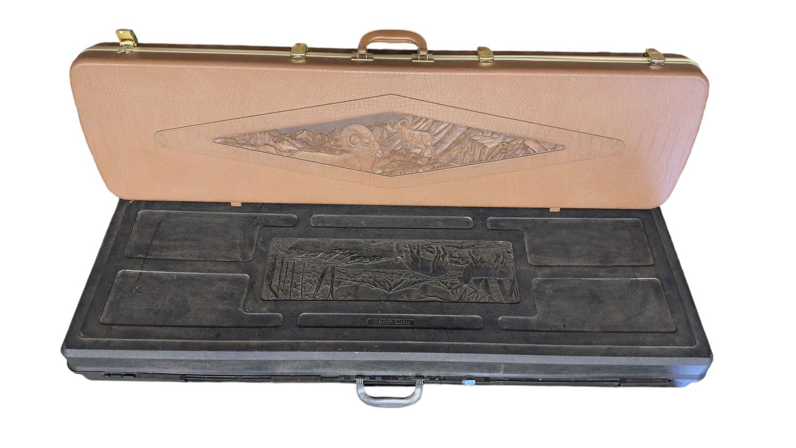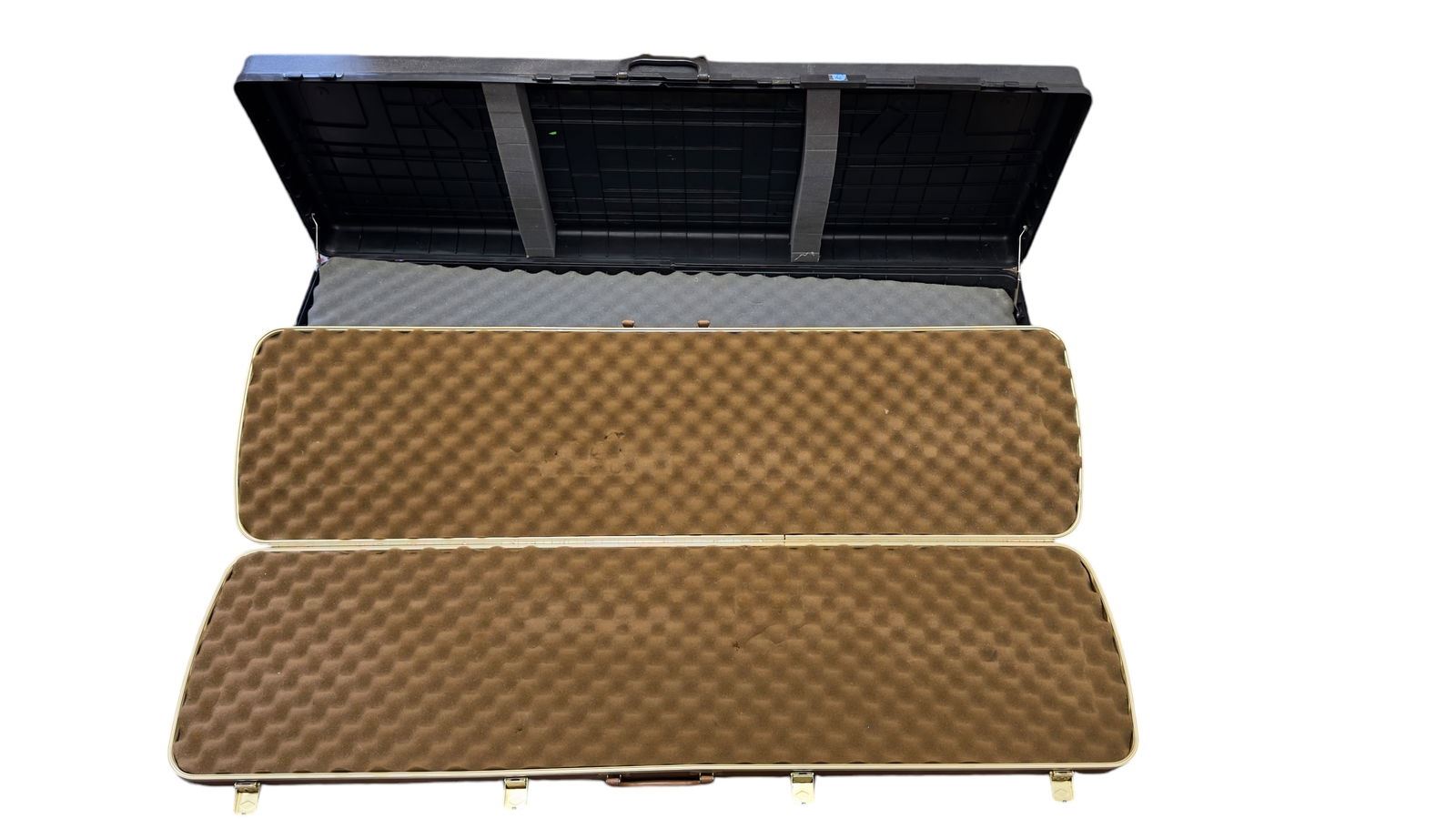 Two hard cases for rifles. Non-locking. And a cast metal deer rack / coat rack approx 22" H x 9" D.