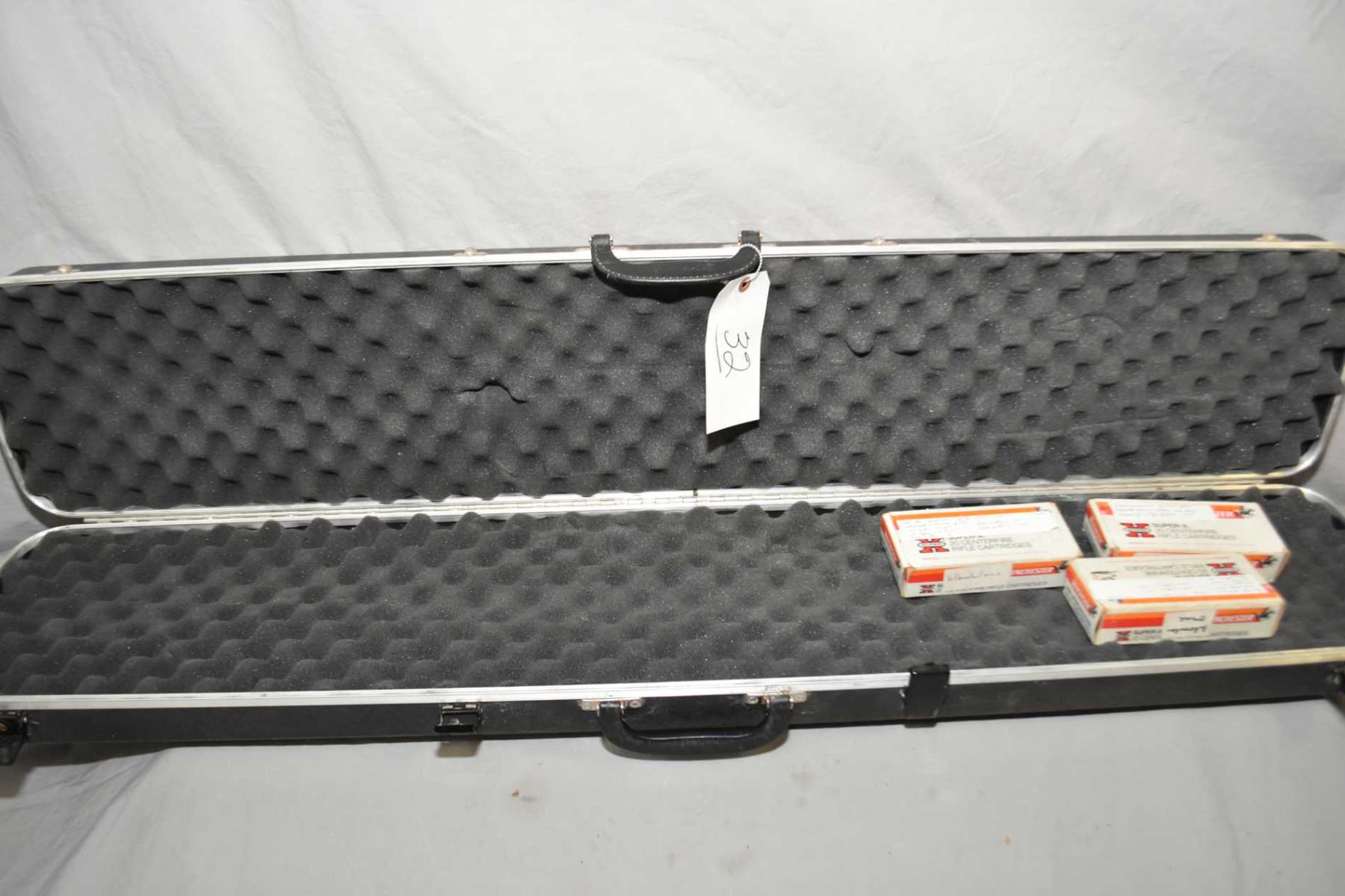 Gun Guard Foam Lined Black Plastic Luggage Gun Case w/ 20 rnds .356 Win Cal Reloads, plus two boxes brass