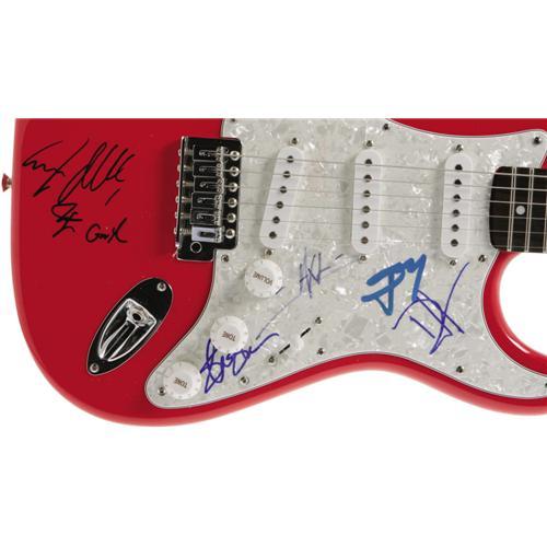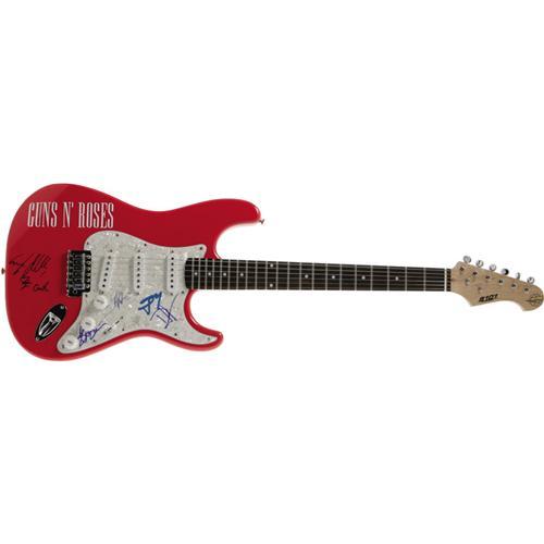 <B>Guns N' Roses Autographed Guitar.</B></I> A red S101 Standard six-string electric guitar with mother-of-pearl pick guard, decorated with band logo and signed by Axel Rose, Slash, Duff McKagan, and others in blue marker. In Excellent condition.<BR><BR><b>Shipping:</b> Musical Instruments, Large (<a target="_blank" href="http://www.heritageauctions.com/common/shipping.php">view shipping information</a>)