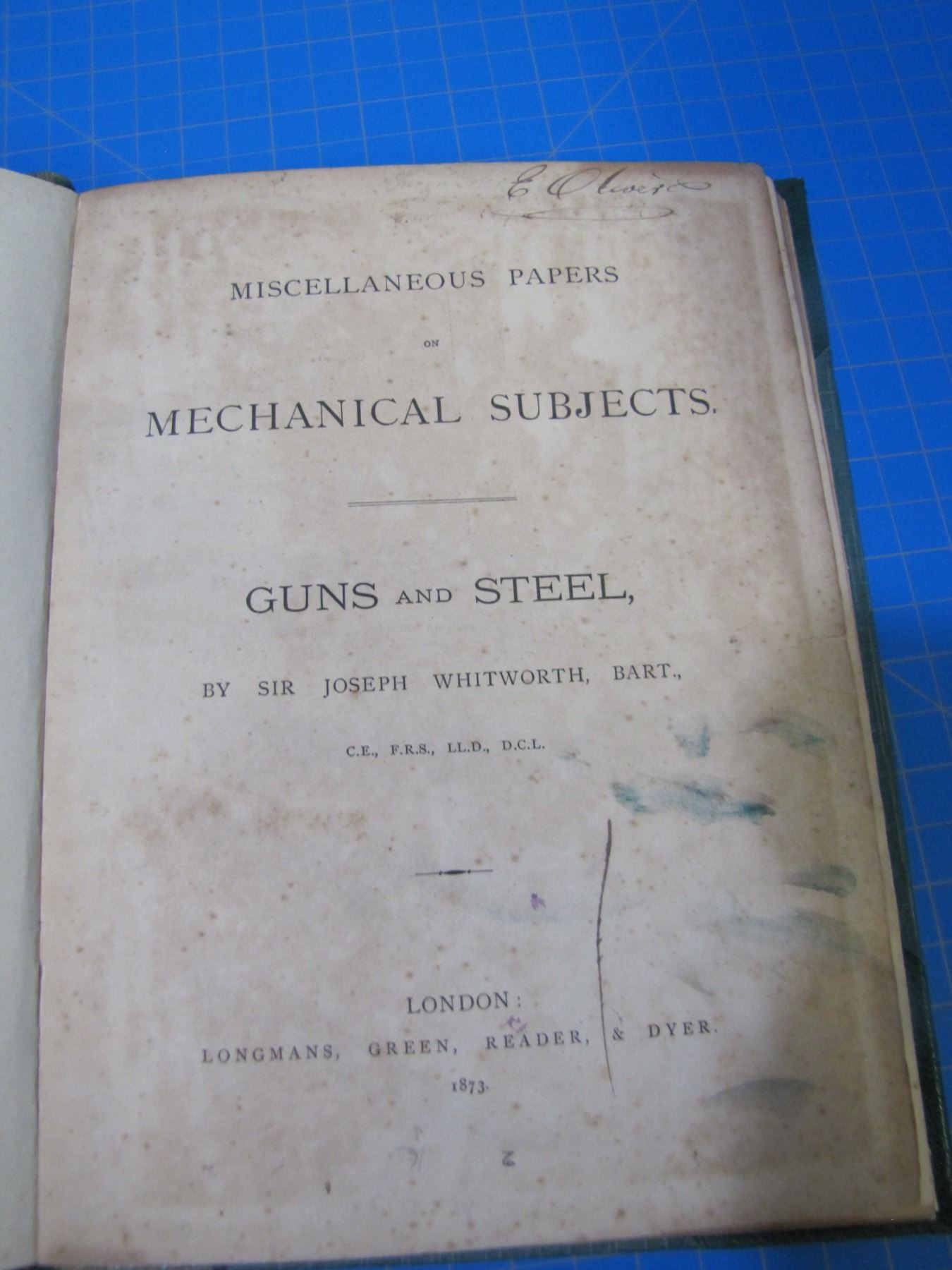 Guns and Steel by Sir Joseph Whitwort 1873 edition … CONSIGNOR ID ...B7