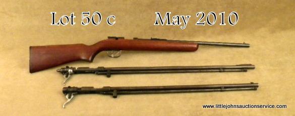 Gunsmith’s lot of rifle parts including a Remington Model 514 bolt-action rifle, .22 cal., with barrel and stock only, in very good condition overall, missing the bolt; an action, bolt, barrel and loading tube for a Marlin Model 81 DL,.22 cal. in overall good condition; and a JC Higgins Model 103 barrel, loading tube and action (no bolt) in overall good condition. Est.: $100-$200.