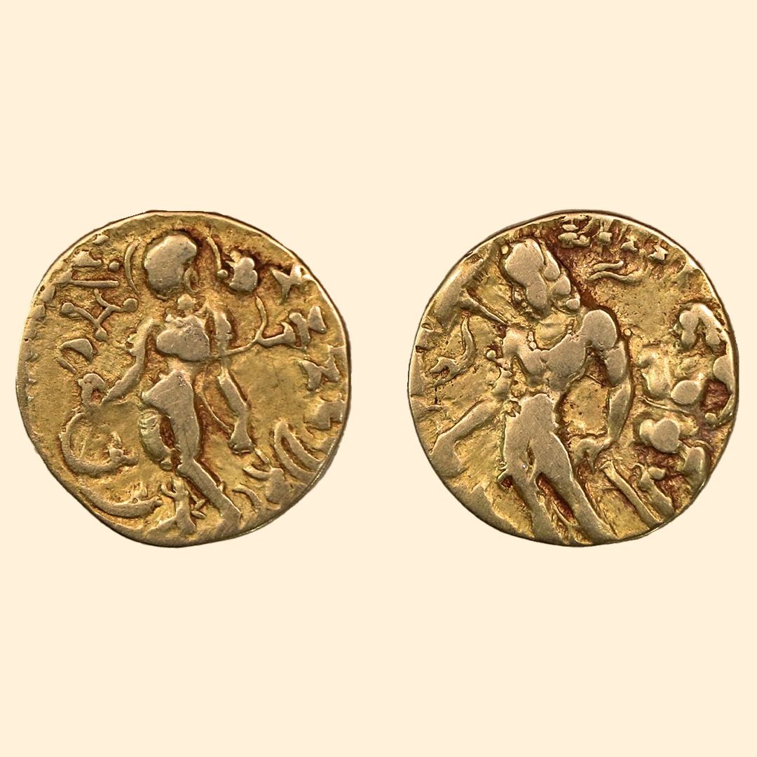 from 1 o clock ‘….Vikramaditya’, REV: Goddess Lakshmi walking to left with crosslegged, she holds noose in her right hand and lotus flower with long stalk in left hand