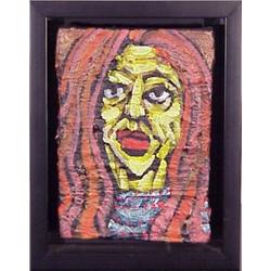WOMAN, acrylic painting on board, 7 1/4 x 5", signed on verso, framed. STARTING BID $20. ESTIMATE $20 TO $1000