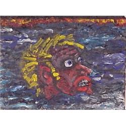 HEAD IN WATER, acrylic painting on board, 8 1/2 x 10 1/2". STARTING BID $20. ESTIMATE $20 TO $1000