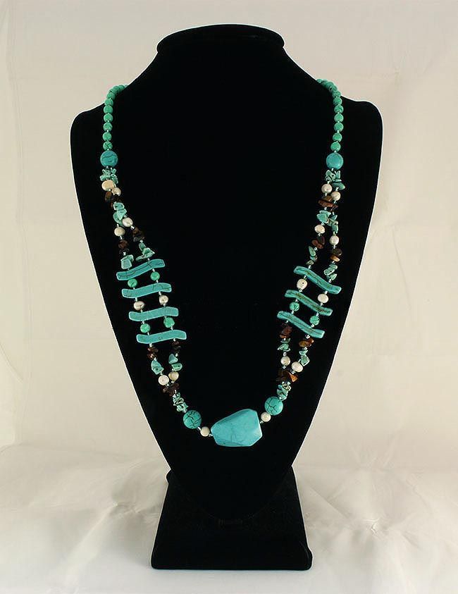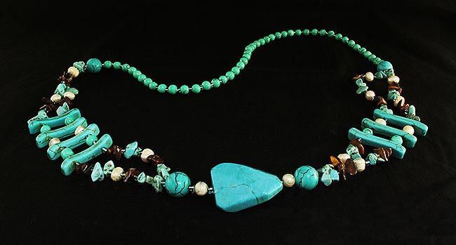 Gushing Sky Blue Turquoise 409.00ctw Beads Necklace **|**|** 28 Inches Long Unique Style Crafted by Hand Natural Turquoise and Tiger Eye Beads in Myriad Shape and Sizes. ; MSRP: $100