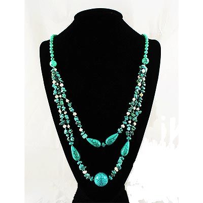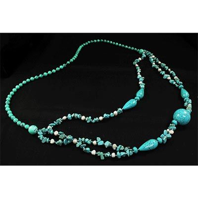 Gushing Sky Blue Turquoise 457.01ctw Beads Necklace **|**|** 34 Inches Long Trendy Style Crafted by Hand 2 Row Turquoise Beads in Myriad Shapes and Sizes. ; MSRP: $100